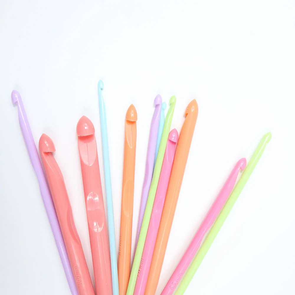 12 шт. в упаковке, Пластик гибкий афганский тунисский ковер вязальные крючки Иглы Вязание игла многоцветная крючком Вязание инструменты 3,5 мм-12 мм
