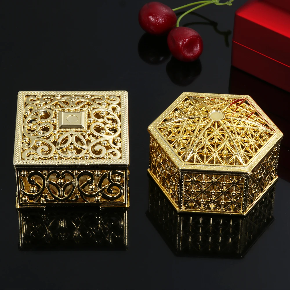 1 шт. пластиковая мини полая Золотая фольга Подарочная коробка для конфет Шоколад для свадьбы сувенир брак ребенок вечеринка праздник событие подарок