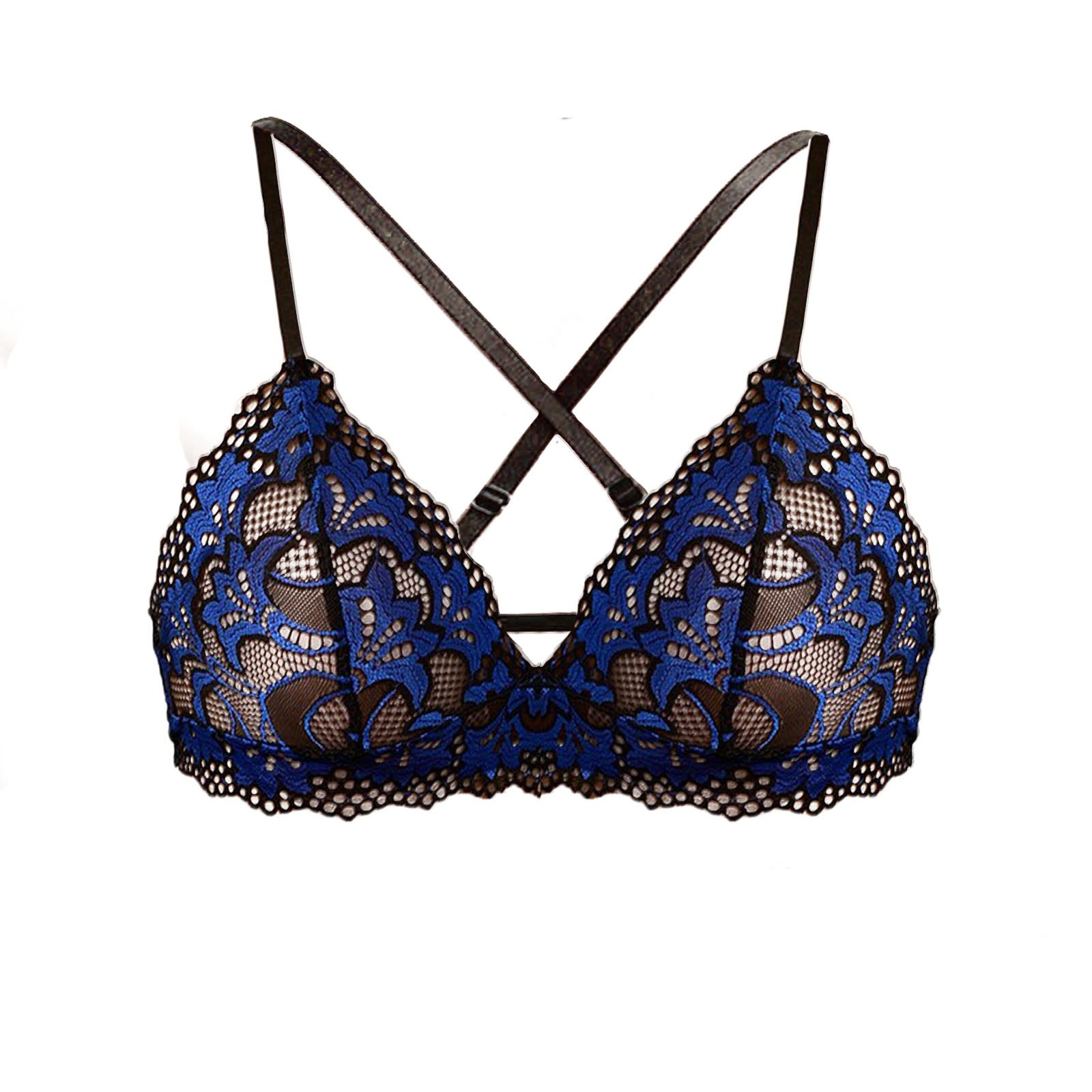S-3XL комплект нижнего белья с вышивкой синего цвета, 3 предмета, Женский комплект нижнего белья с цветочным кружевом и прозрачной сетчатой подвязкой, бюстгальтер с v-образным вырезом и стринги biustonosz T5