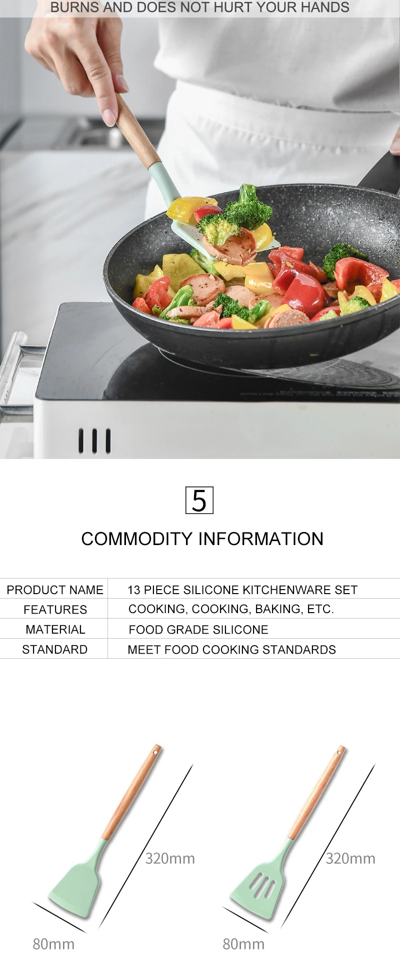 Тип: набор кухонных инструментов Цвет: разноцветный/матча-зеленый/коралловый зеленый/черный/красный/розовый/фиолетовый Материал: силикон + деревянная ручка Размер: как на фото Применение: микроволновая печь/электрическая духовка/посудомоечная машина/пароварка Категория: посуда Набор силиконовой посуды-это кухонный помощник, идеально подходит для всех видов продуктов и приготовления пищи и кухонных принадлежностей, жарки, перемешивания крема, масла, мороженого и т. Д. Включает в себя лопатку, кисточку для выпекания, остроконечную лопатку, круглую лопатку, ковш, прямолинейную лопатку, ложку, щипцы, Вилка для макарон и идеально подходит для всех видов продуктов и приготовления пищи.