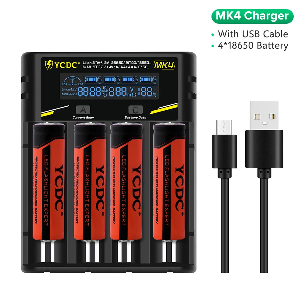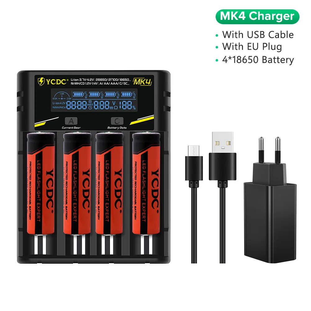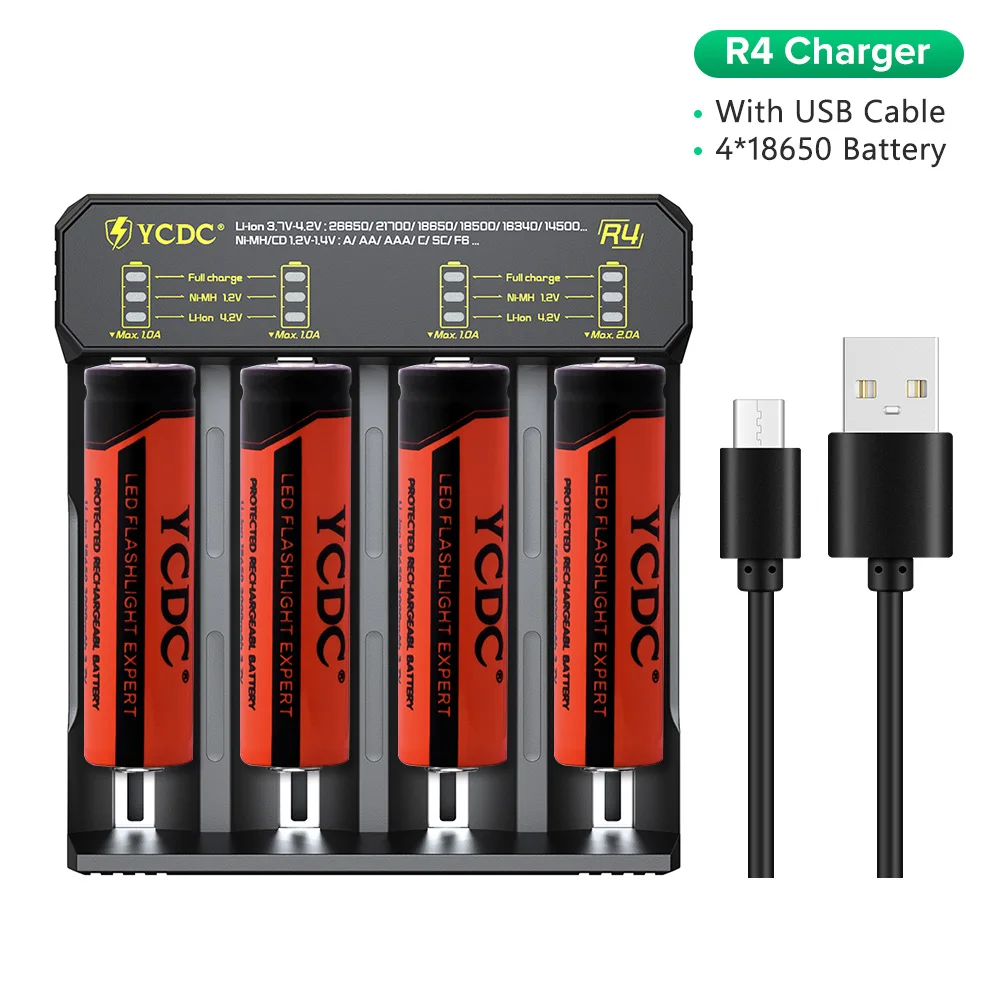 YCDC 18650 литиевые батареи фонарик 18650 Перезаряжаемые-Батарея 3,7 V 3000 мА-ч для фонарик + Универсальный Батарея Зарядное устройство