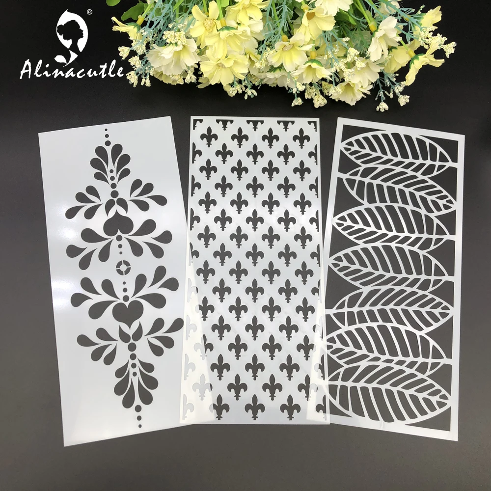 Название: трафарет Материал: пластик Цвет: как на фото Размер: (приблизительно): 10*22,8 см на лист Может быть 0,1-.02 см отличаться в связи с тем, что измерения выполнены вручную. Посылка: 1X3 вида конструкций Особенности Использование: * Эти длинные трафареты отлично подходят для карт Slimline, а также отлично подходят для трафаретной стены, живописи, скрапбукинга, пекарни и т. д. * Высокое качество с ПЭТ-материалом * Моющиеся и многоразовые