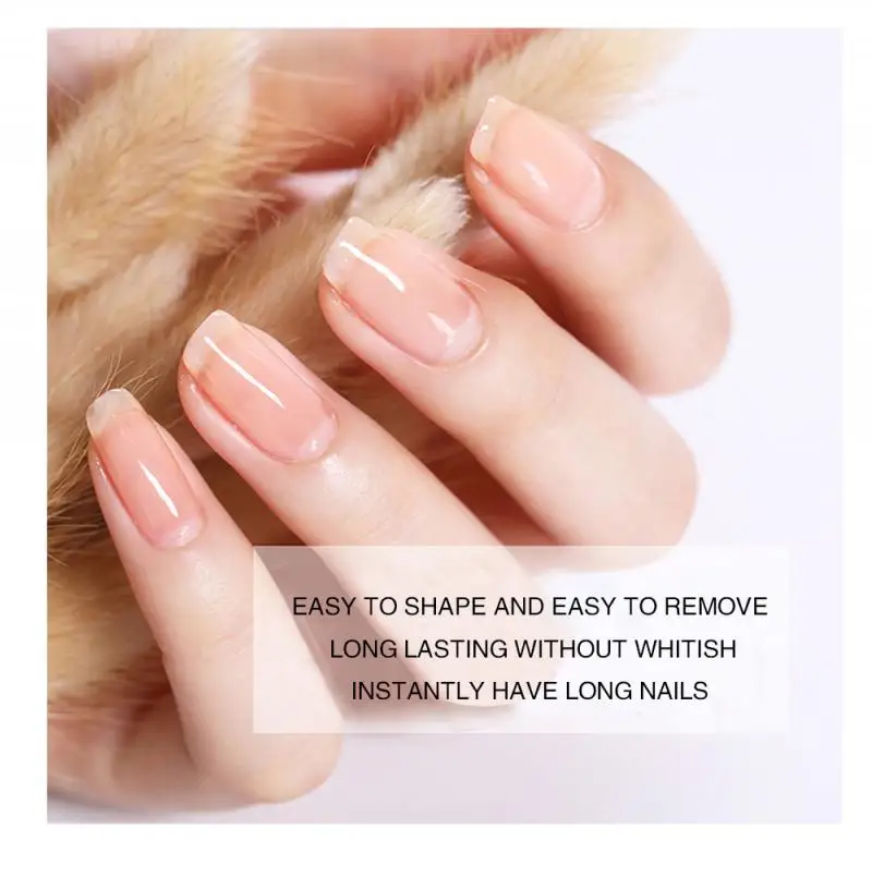 3. Легко наносится. Не требуется форма ногтя или акриловый наконечник ногтя. Обрежьте, нанесите и отвердите, чтобы иметь идеальное наращивание ногтей, не отправляясь в дорогой маникюрный салон!