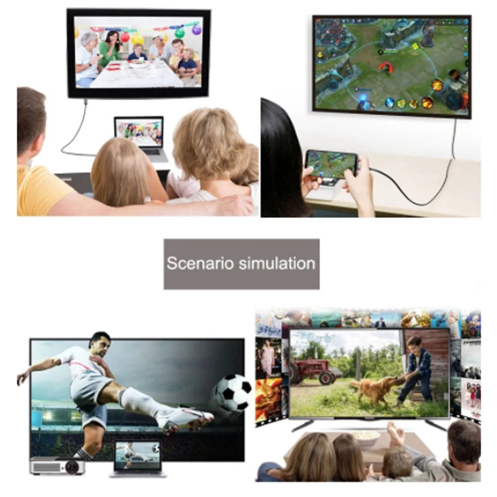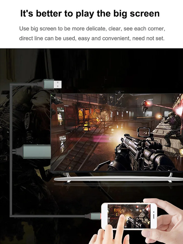 2. Подключи и играй, вы можете просто подключить HDMI-совместимый разъем к вашему телефону/планшету/компьютеру, а затем кабель начнётся автоматически. Нет необходимости устанавливать драйвер/приложение, нет необходимости в личной точке доступа, Wi-Fi или bluetooth.