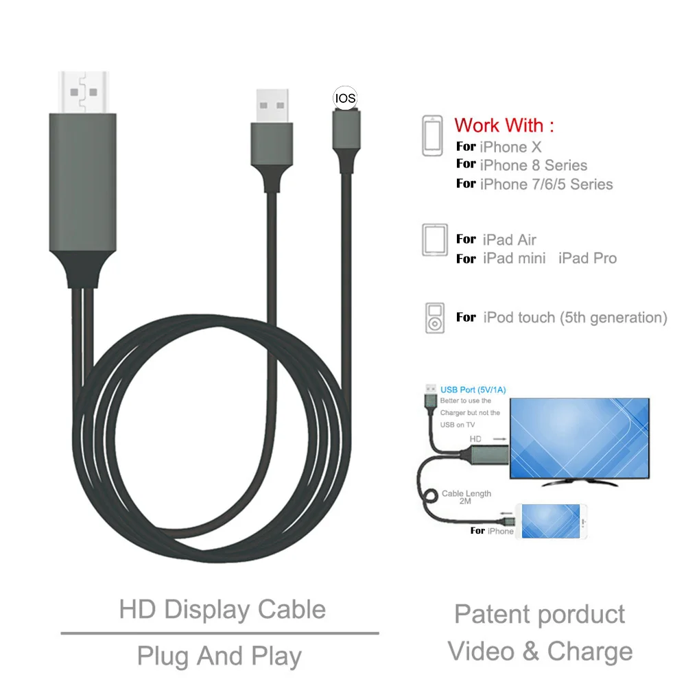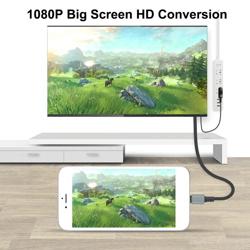 1. Этот продукт может напрямую подключаться для iPhone5/5s/6/6s/6plus/6s plus/7/7plus/8/X/XS к HDTV для реализации полного цифрового изображения, который прочнее и стабильнее, чем аналоговый сигнал VGA. Он также поддерживает 1080P и может напрямую поддерживать выход, без задержек, без застоя.