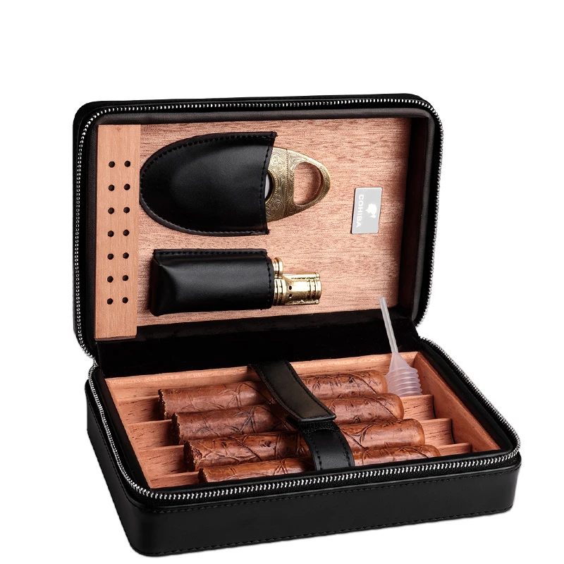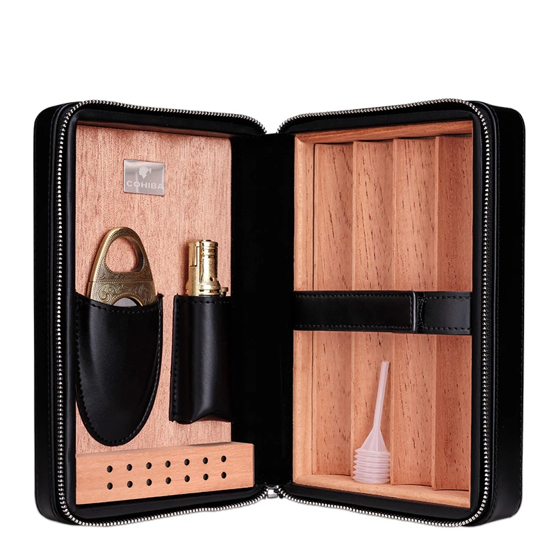COHIBA кедровая древесина коричневая сигара Humidor Портативный кожаный чехол для сигар без зажигалки резак увлажнитель Humidor коробка CH-014