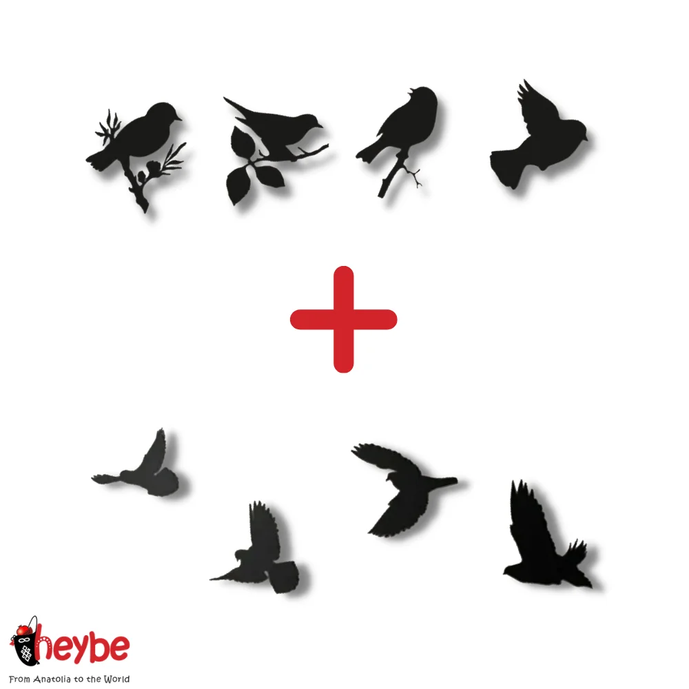 Набор из 4 летающих птиц и 4 птички на ветке вместе. Получите два набора вместе за меньшее количество. Если вы хотите, Украсьте больше своих стен или подарите их своим близким.