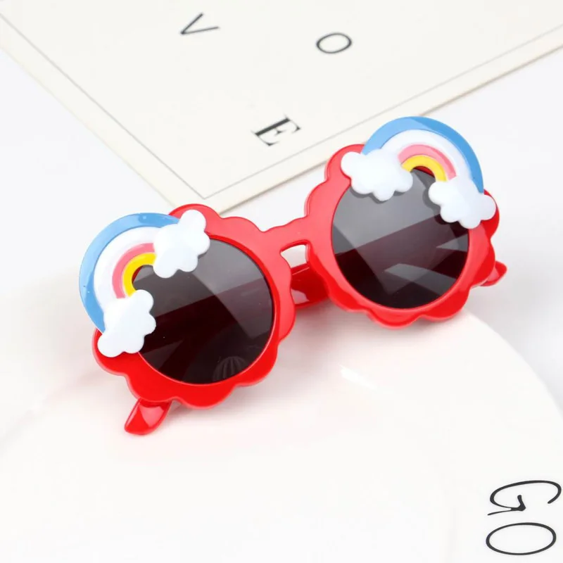 Детские солнцезащитные очки красного цвета и радуги; Милые розовые, синие, желтые очки для маленьких мальчиков и девочек; Трендовые круглые очки; Коллекция 2021 года; Модные вечерние очки
