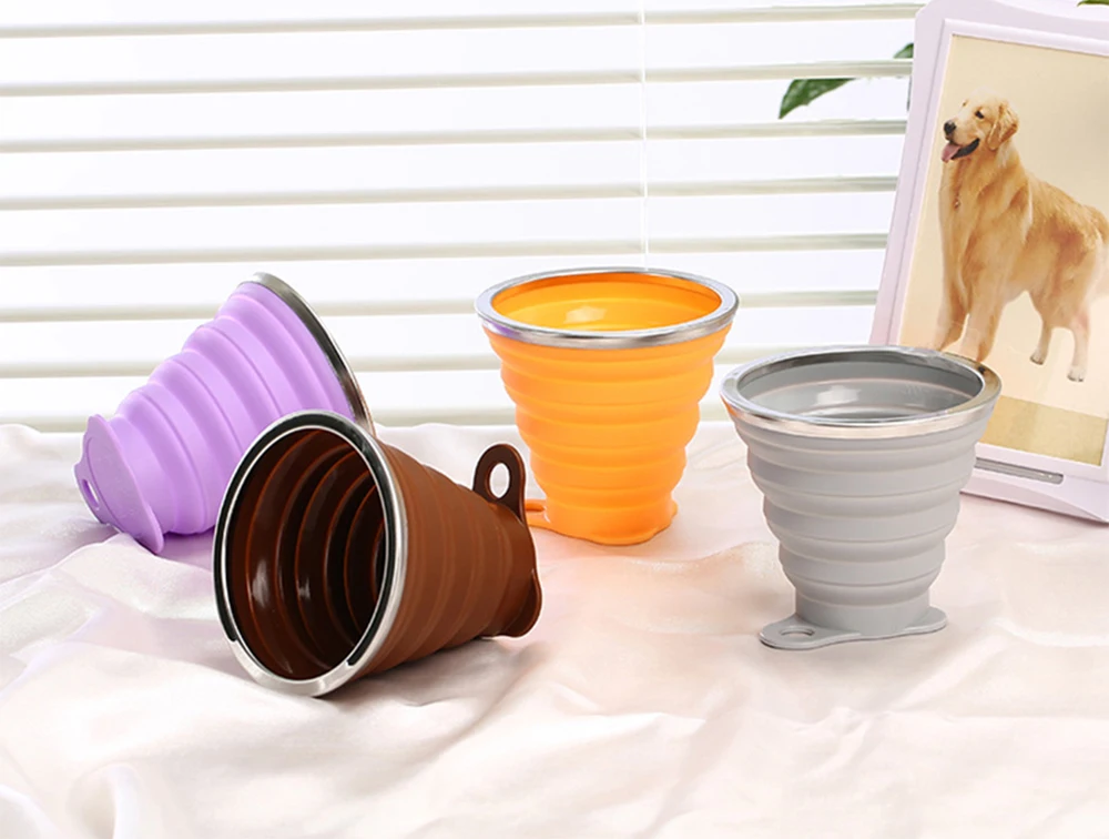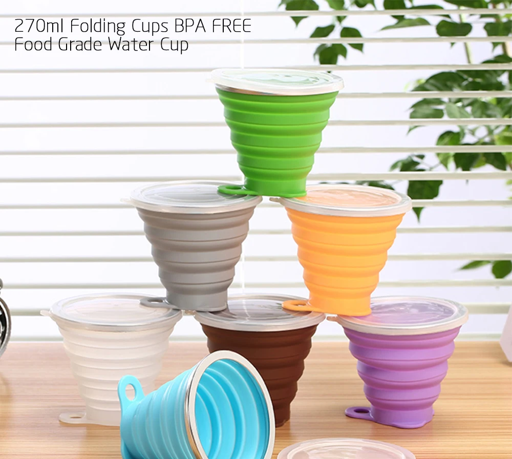 4 шт. набор складных чашек 270 мл BPA бесплатная пищевая чашка для воды силиконовая Выдвижная цветная портативная напольная кофейная ручная чашка