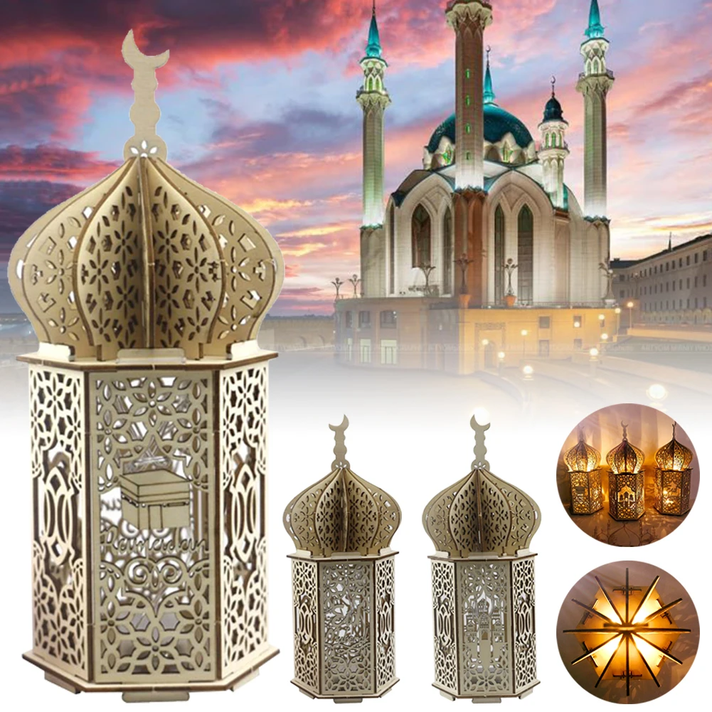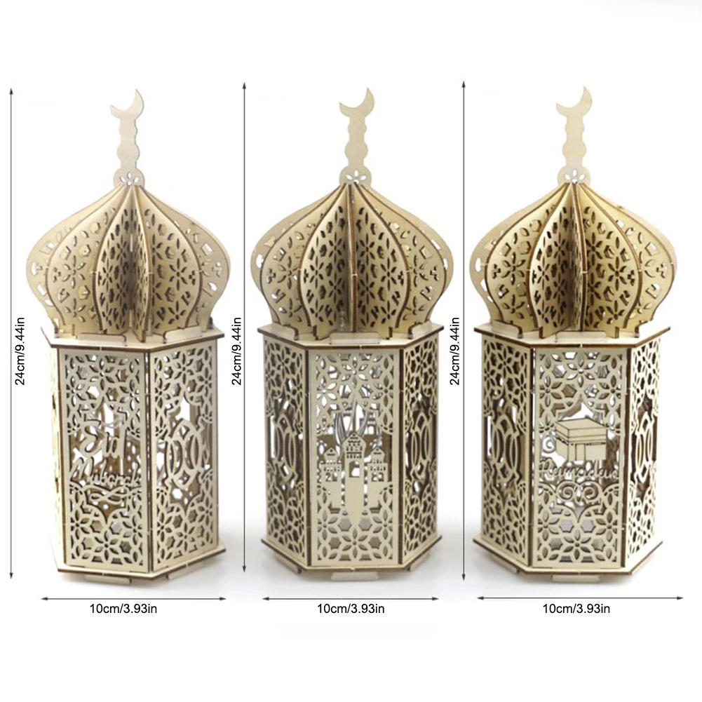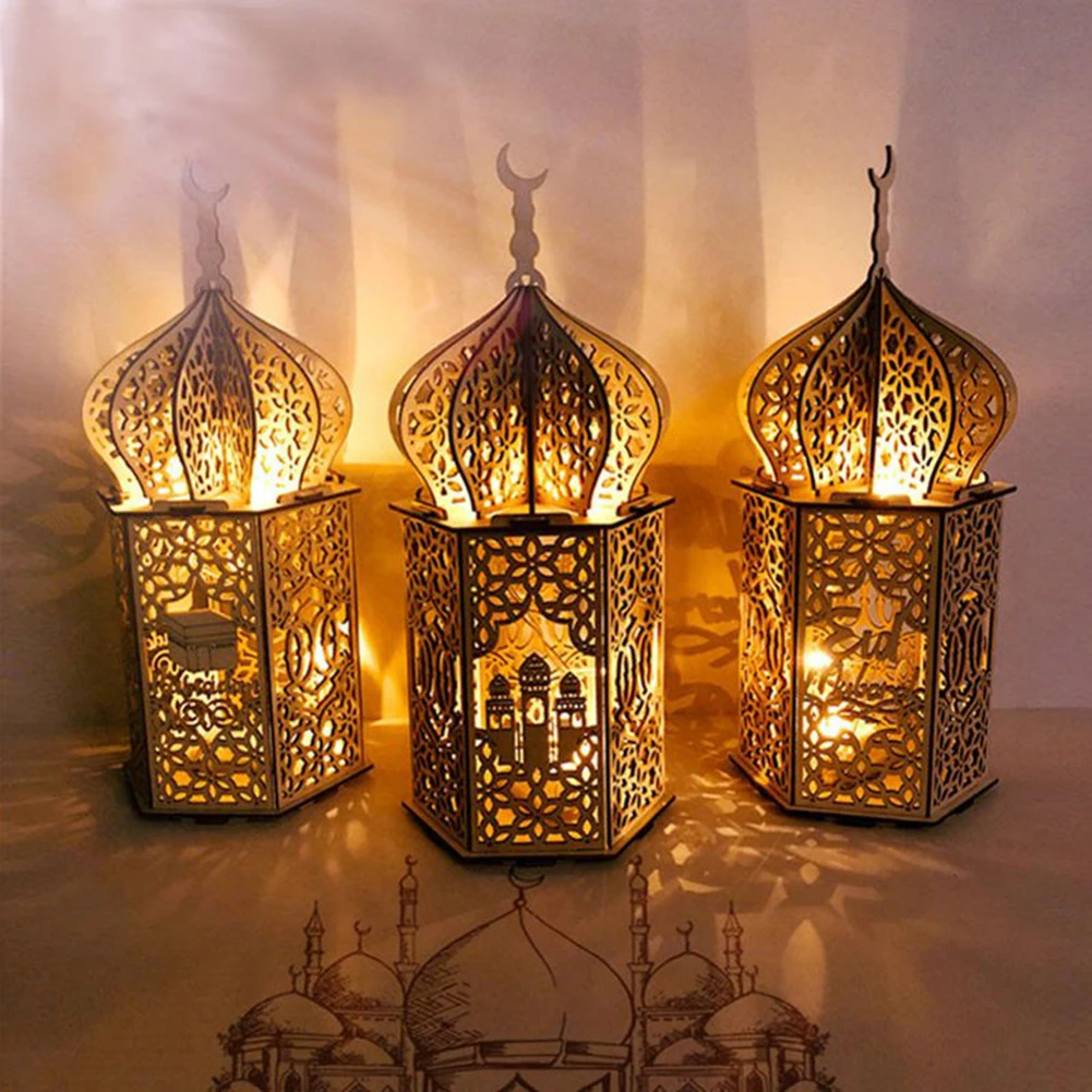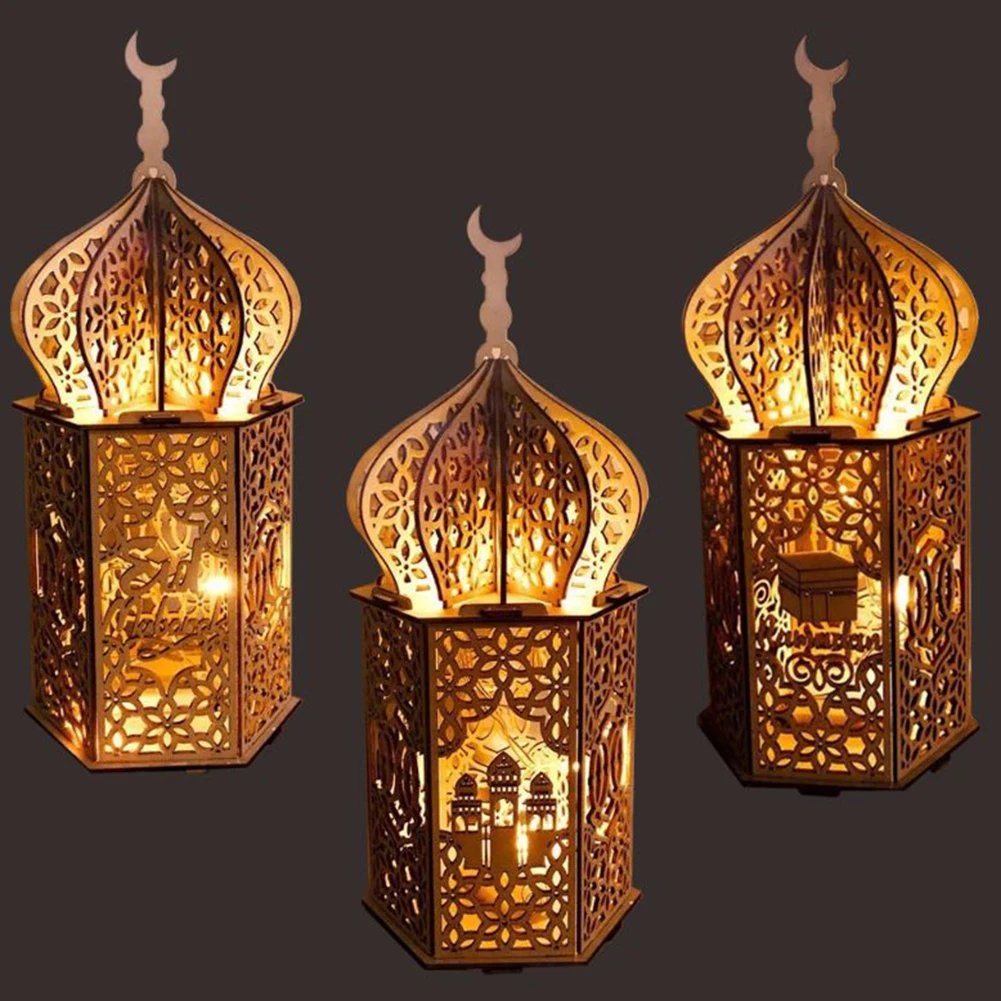 Wooden Eid Mubarak Light Accessories Ramadan Kareem Ramadan Decorations Islam Gift Muslim Hanging Lantern Palace Light Eid Party