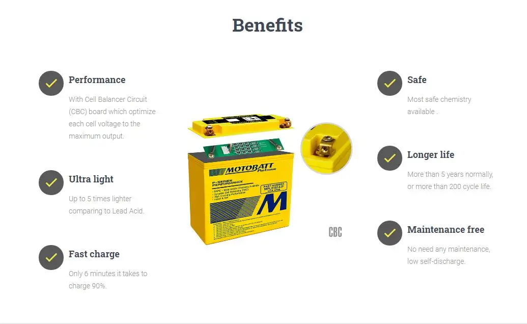 1. Литиевые батареи Motobatt примерно в 3 раза легче свинцово-кислотных батарей