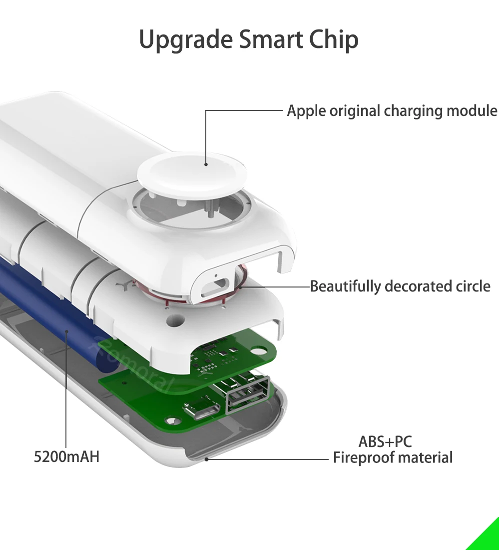 Часы беспроводной зарядки для Apple Watch серии 4 3 2 1 с 5200 мАч мобильный телефон зарядное устройство для Iphone X 8 Xiaomi HuaWei