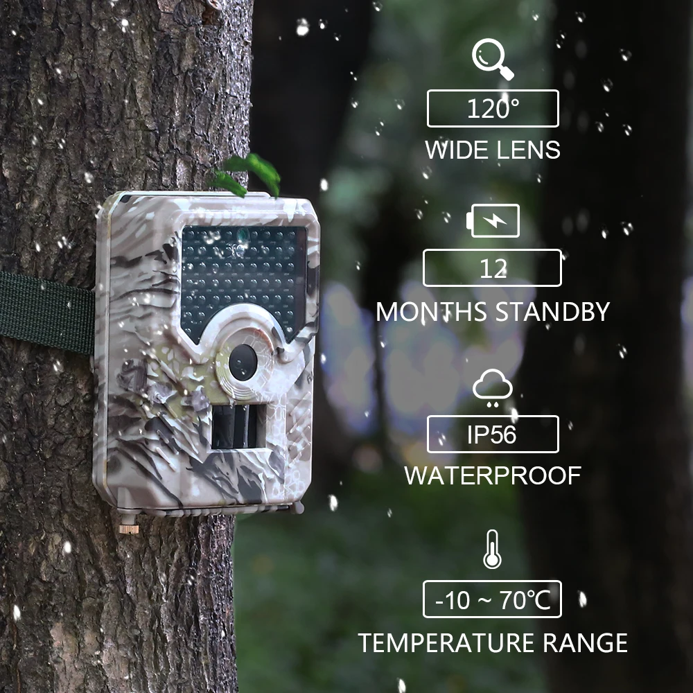 Эта игровая камера поставляется с 49 светодиодами ИК с низким свечением и высокочувствительным PIR датчиком. Он может быть срабатывает в определенном регионе заинтересованного (ROI) путем обнаружения любого движения объектов или животных в впечатляюще быстрой скорости 1 секунды. Полноцветное Изображение (до 12 МП) в дневное время, черно-белое изображение в ночное время и видеоклипы 1080P со звуком. Широкий Угол обнаружения 110 ° и 3 фотографии снимаются каждый раз, гарантируя, что вы никогда не пропустите незабываемые моменты. Эта камера не только широко используется для игр на открытом воздухе и наблюдения за дикой природой, но и популярна в домашней и офисной безопасности.