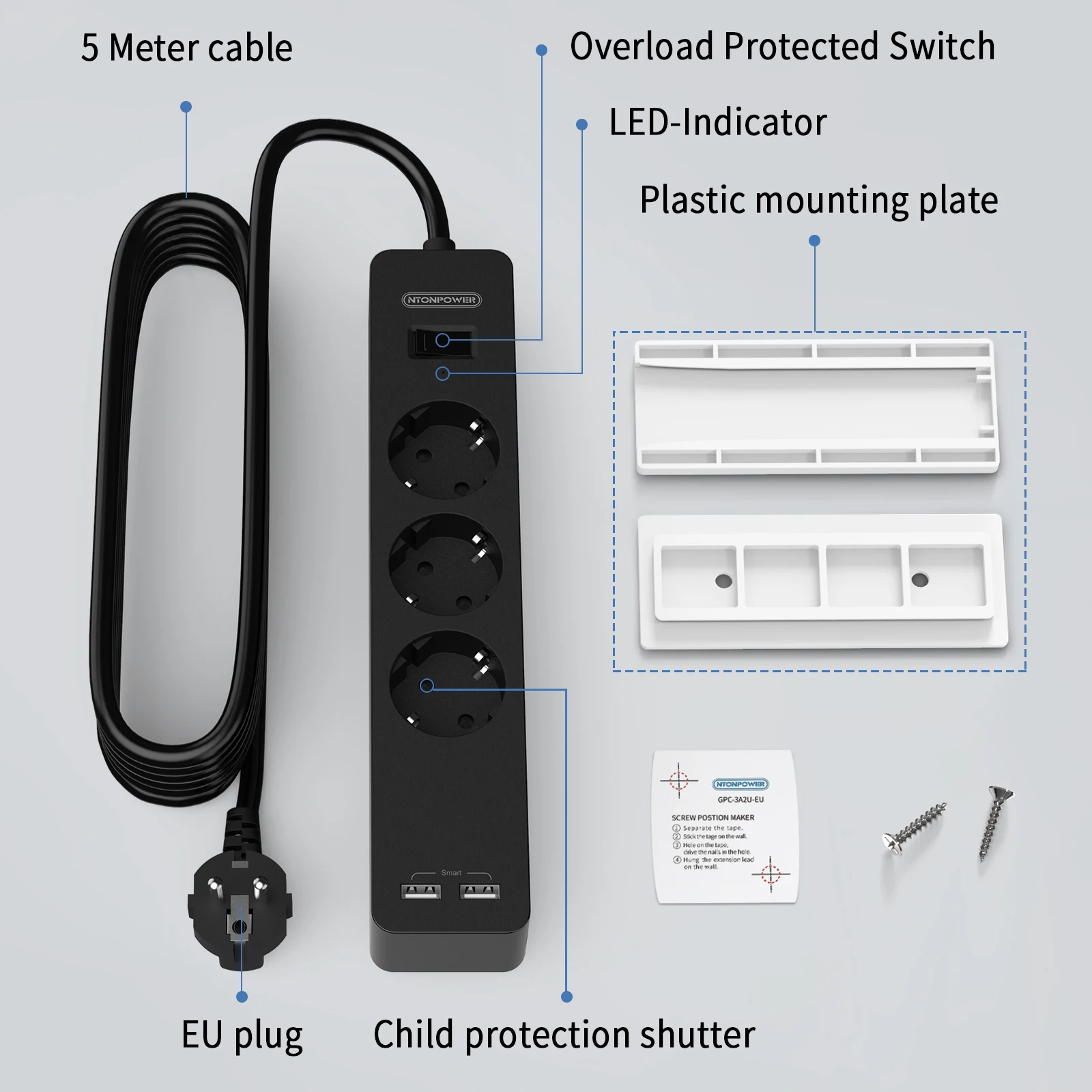 1. Удлиненный кабель длиной 5 метров: удлинитель с длинным кабелем позволяет легко и легко выдвинуть настенную розетку на стол или прикроватную тумбу. Мягкий, но гибкий кабель питания имеет более длительный срок службы. Вилка европейского стандарта может использоваться в большинстве европейских стран. 2. Настенное крепление с помощью липкой пластиковой пластины: устарело сверлить отверстия в стене для настенного монтажа удлинителя. Используя настенную пластиковую пластину с супер липким клеем с обеих сторон, вы можете установить настенный удлинитель в течение 30 секунд. Клей не оставляет следов, когда вы его удалите. Удлинитель больше не собирает пыль на земле в вашем доме. 3. Зарядное устройство USB: удлинитель с 2 умными USB-портами может предоставить некоторые удобства для зарядки устройства. Интеллектуальный USB-порт NTONPOWER может автоматически обнаруживать зарядные устройства и обеспечивать подходящий ток для разных устройств, а электронику можно заряжать быстро и безопасно. 4. Надежное качество: удлинитель использует огнестойкий материал PC + ABS 750 ° C, вдали от возгорания. Интегрированная медная конструкция и Безопасные ворота для детей обеспечивают большую защиту. Сертификация CE, ROHS. 5. Гарантия: удлинитель NTONPOWER предлагает 18 месяцев гарантии со дня размещения заказа. Поэтому, если вам нужна помощь, пожалуйста, не обращайтесь к нам.