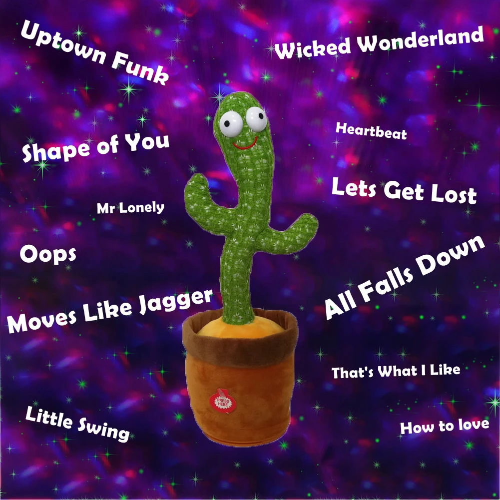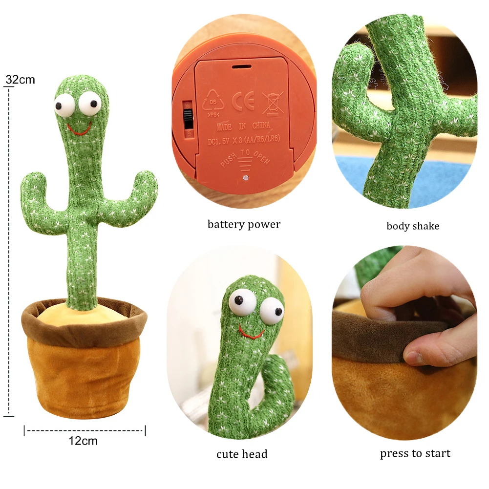 Материал: плюш Источник питания: 3 батарейки AA (не входят в комплект)/зарядка через USB Размер изделия: 32*12*12 см Характеристики: 3 английские песни версия (без светильник, не может повторять голос) / 120 китайский аккумулятор версия (с светильник и может повторять голос) / 120 китайский, перезаряжаемый (с светильник и возможностью повторения голоса) 1. Высококачественный плюшевый материал, не легко линять волосы, без флуоресцентного агента, безопасный для детей 2. Есть три спецификации для вашего варианта, все с функциями пения и танцев, а спецификации 120 песен также имеют функции, излучающие светильник и повторяющие голос. Это многофункциональная и интересная игрушка 3. Подарок, который понравится детям, а также может быть помещен в комнату в качестве украшения Посылка содержит: 1x игрушка