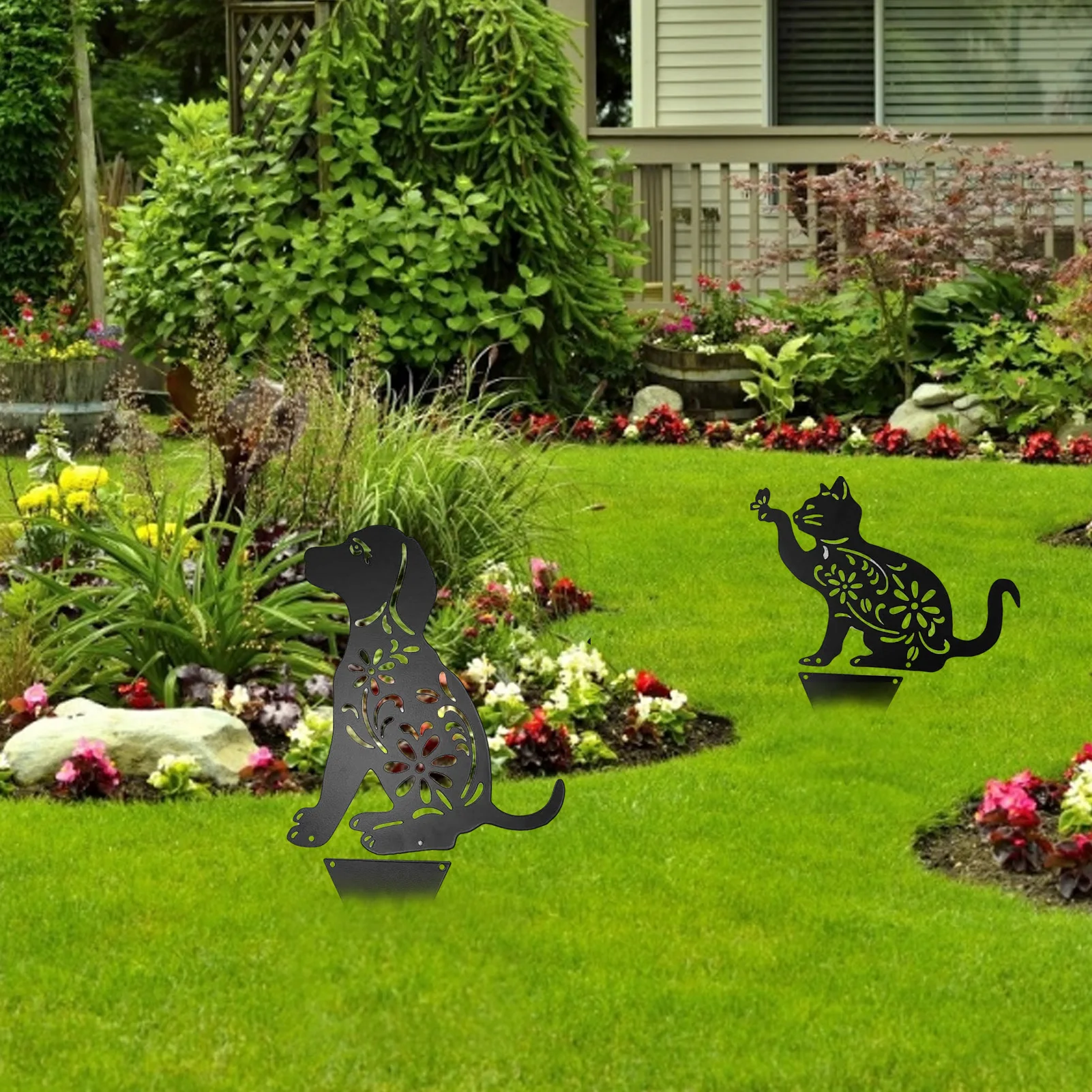 Металлическая Декоративная кошечка для сада, собачий силуэт, защита от солнца и водонепроницаемость для украшения сада на открытом воздухе
