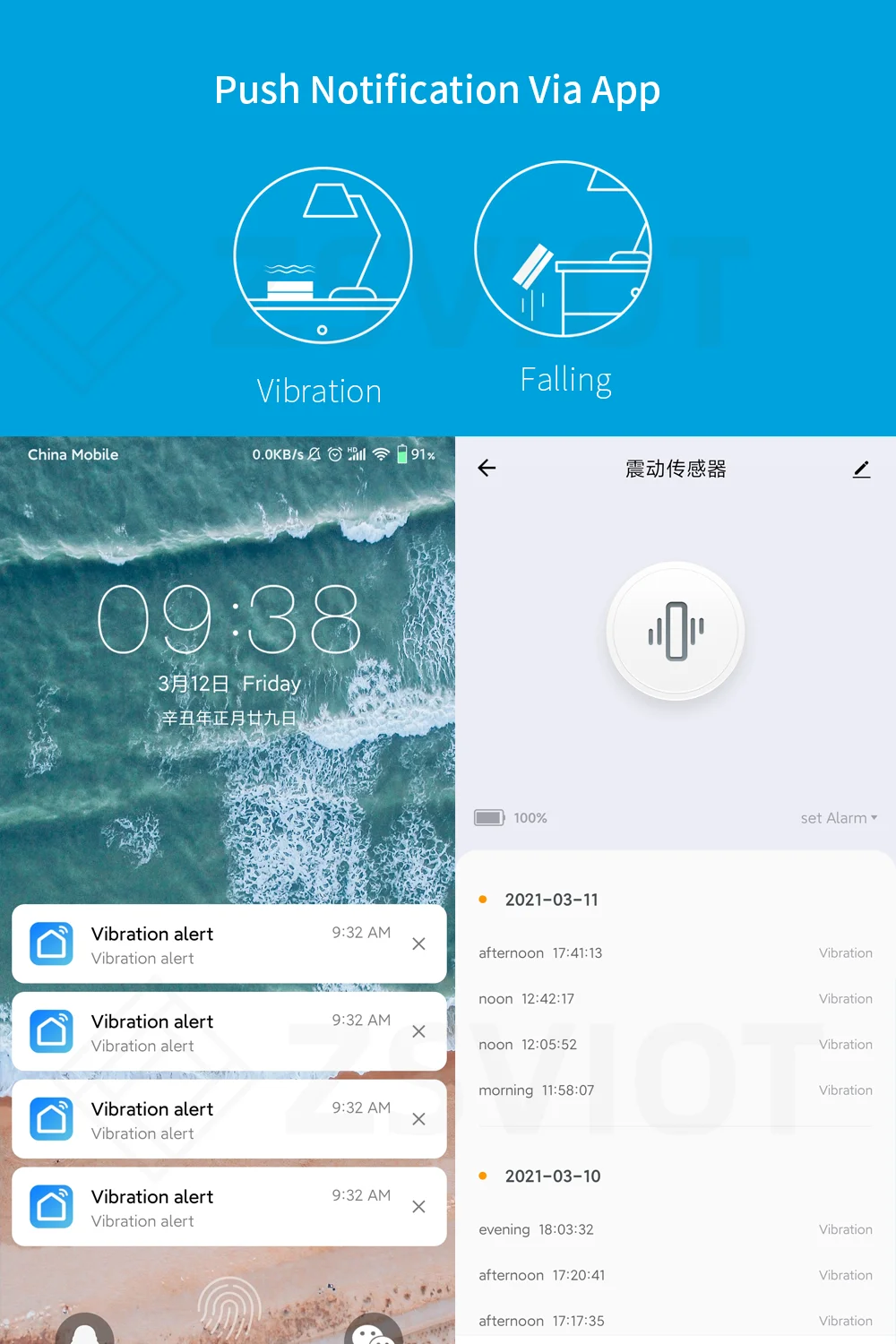 Мониторинг изменений устройства в режиме реального времени и push-уведомления, когда устройство движется, падает, хиты, тряски и другие изменения состояния,