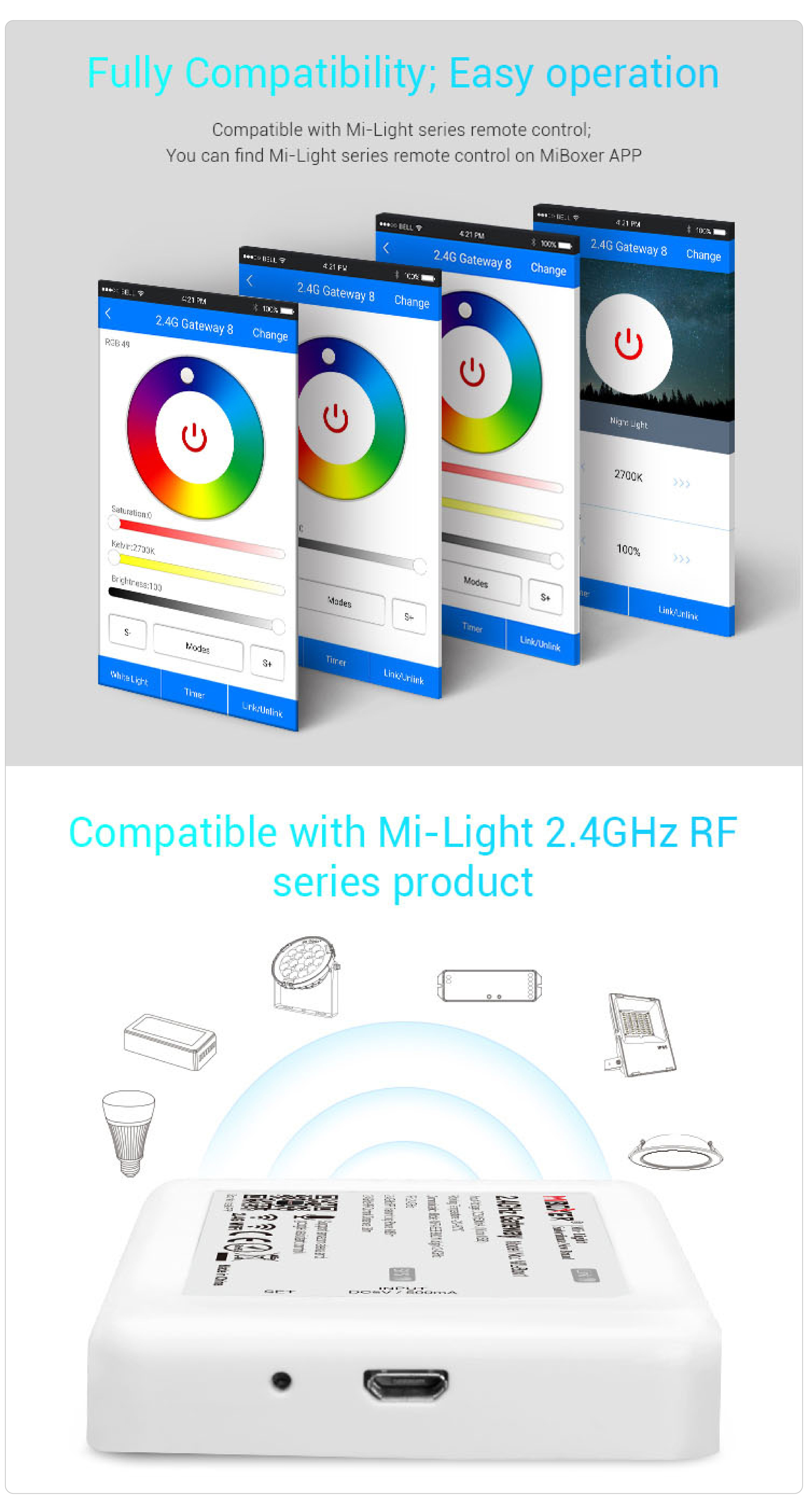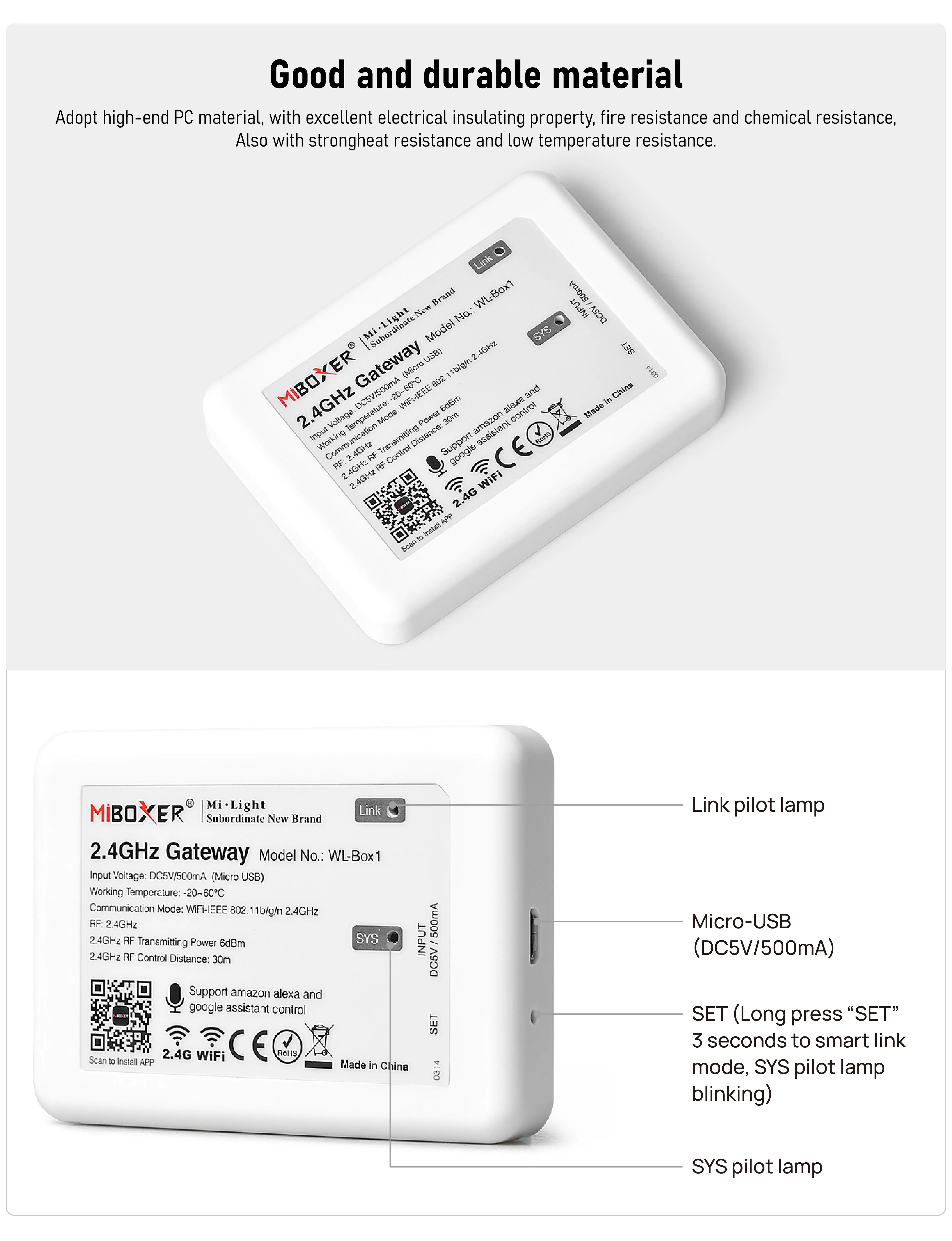Шлюз Wi-Fi WL-Box1 Mi светильник 2,4 ГГц совместим с контроллерами серии Miboxer и Alexa и Google Assistant