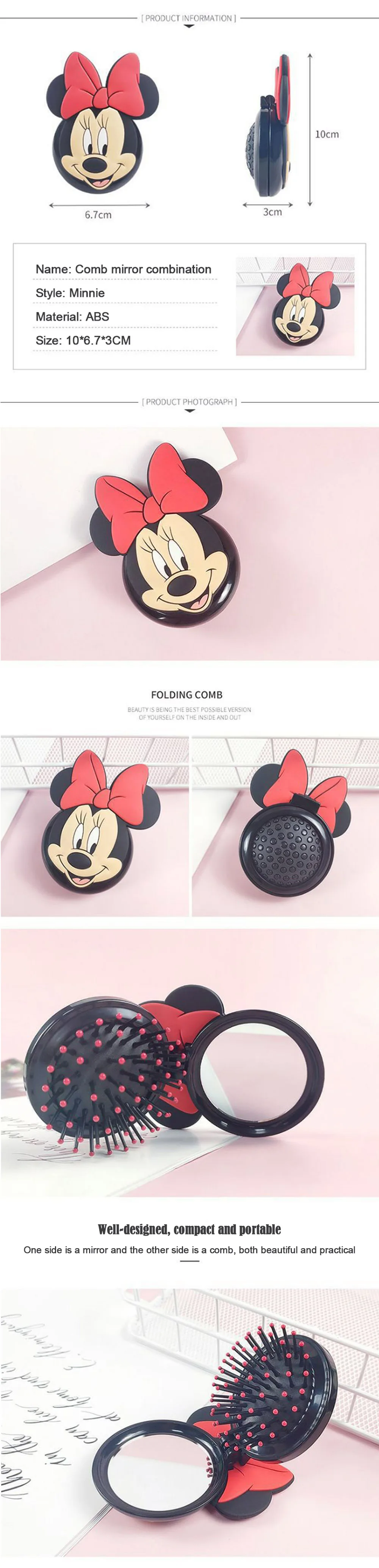 Дисней Микки Маус, расческа для волос, мультяшная воздушная подушка, расческа для волос, Антистатическая расческа, зеркальный набор, детская Милая Массажная щетка с Минни для девочек