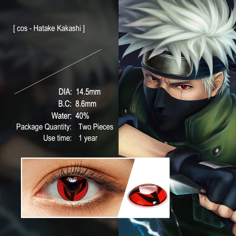 Косплей Контактные линзы глаз аниме цветные контакты Kakashi Sharingan контактные линзы Hughes Rinnegan Byakugan контактные линзы Тип товара: контактные линзы Диаметр: 14,5 мм Содержание воды: 40% Основание кривое: 8,5 мм Диоптрий/степень:-0,00 Цвет: Красные линзы Твердость линз: мягкая Ингредиент: мягкий гидрогель (хема) Срок годности: 5 лет (до открытия) Время использования: 12 месяцев (после открытия)