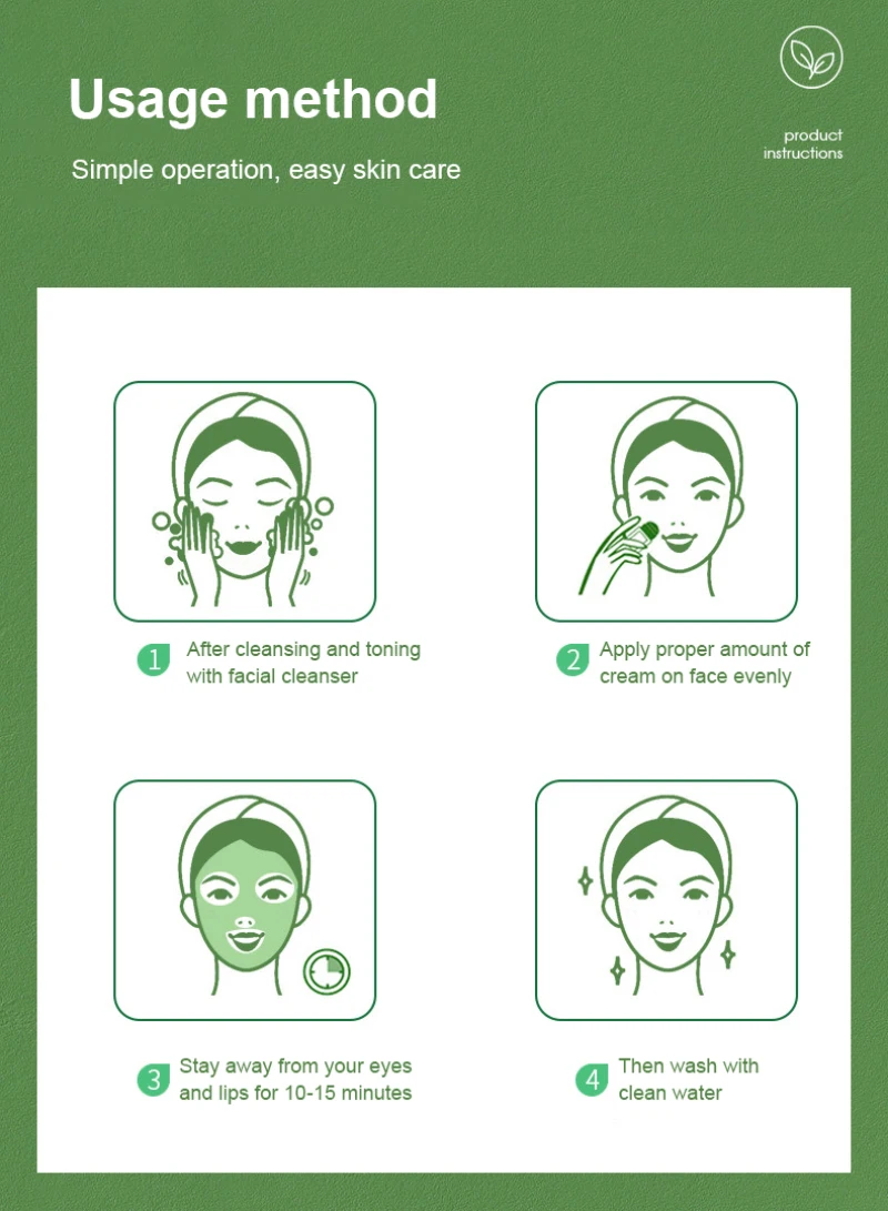 Однотонная Очищающая маска зеленого чая содержит экстракт зеленого чая, который может эффективно очищать поры кожи, глубоко очищать кожу от грязи, регулировать водный и масляный баланс кожи, восстанавливать влагу кожи, И питает кожу.
