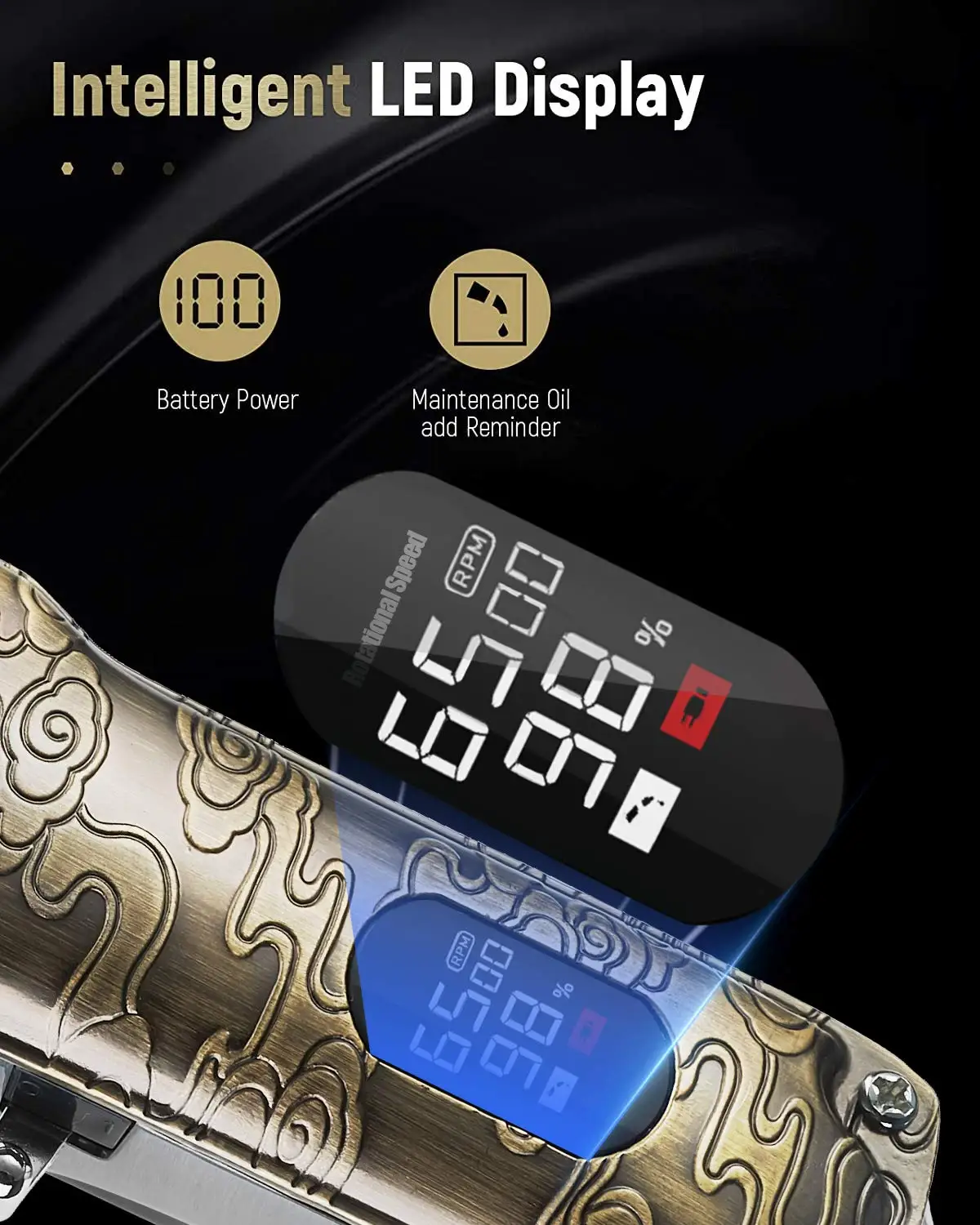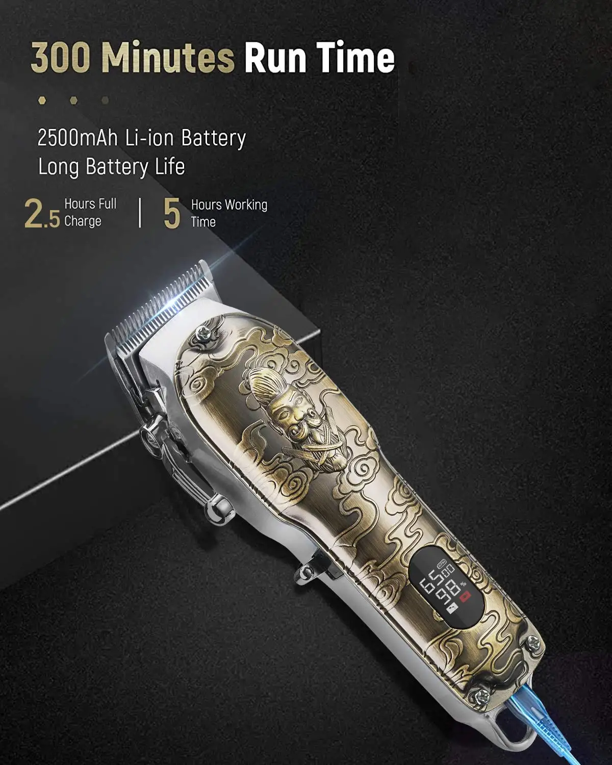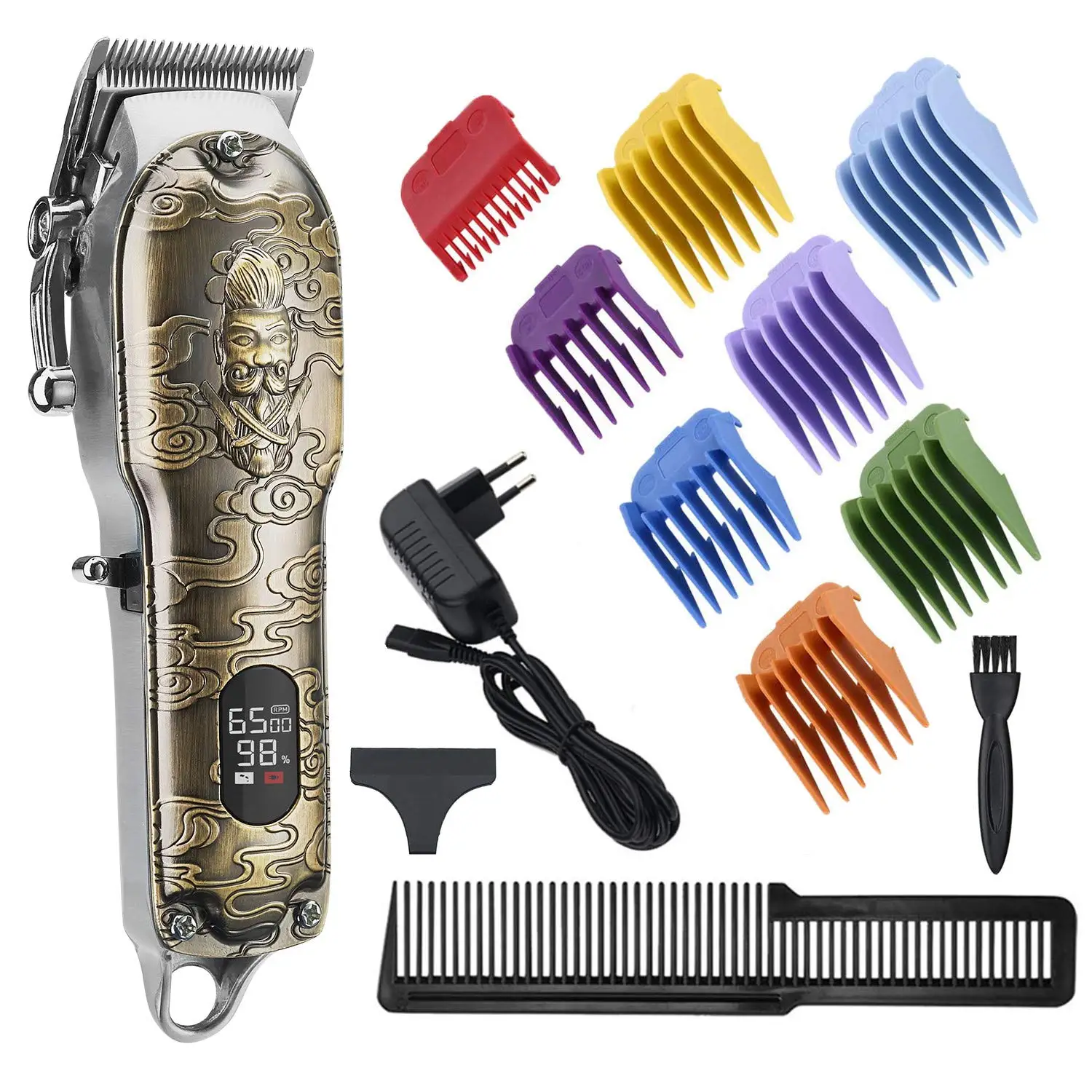 Регулируемое положение шестерни: регулируемая длина режущей головки ЖК-экран для отображения данных о заряде аккумулятора, вы можете четко видеть оставшуюся батарею Профессиональный парикмахерский инструмент, или для домашнего использования 8 направляющие разрезания (1,5/3/4.5/6/9/13/16/19 мм) 3V высокоскоростной Профессиональный 390 основной двигатель, постоянное количество оборотов, 2 скорости Быстрая зарядка и сильная мощность Конический рычаг С подвесной петлей