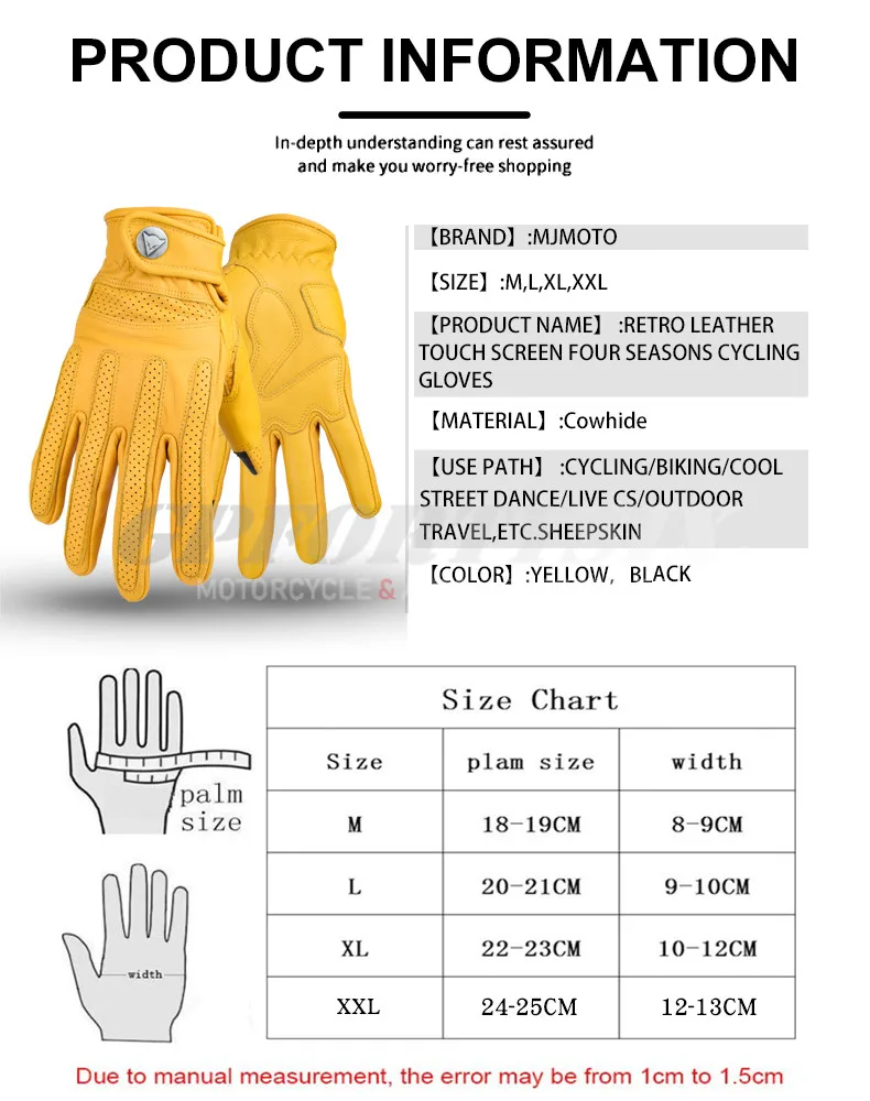 Мотоциклетные Перчатки MJMOTO из натуральной кожи, мужские мотоциклетные перчатки с закрытыми пальцами, весенние винтажные коричневые перчатки с мехом из коровьей кожи