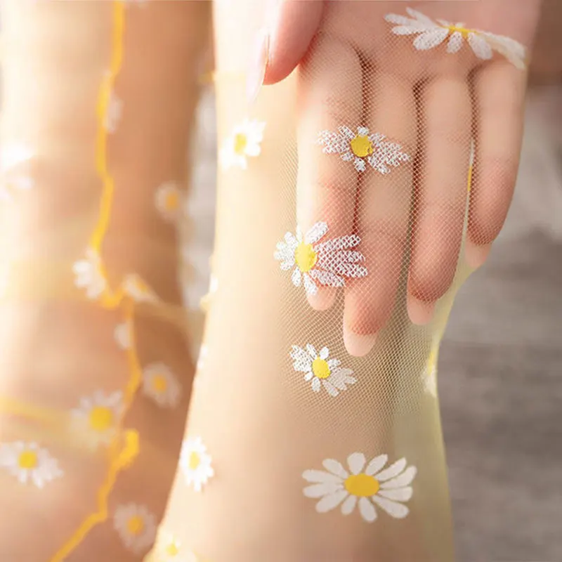 Короткие носки с цветочным рисунком; Ультратонкие Модные женские носки; Сетчатые носки с ромашками
