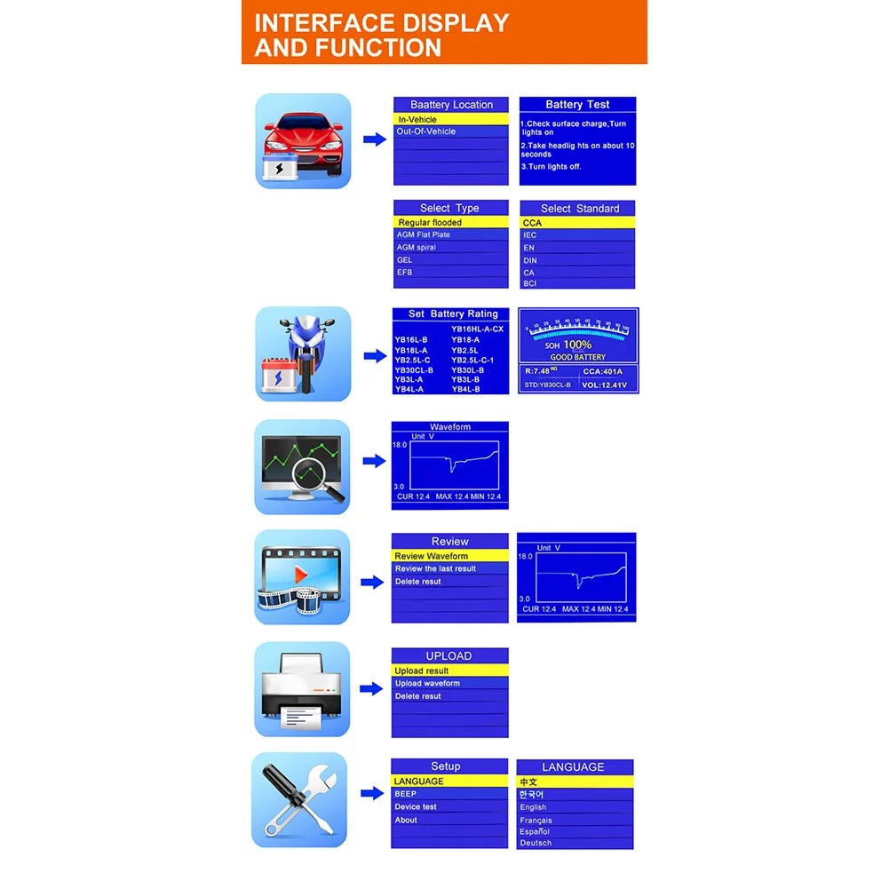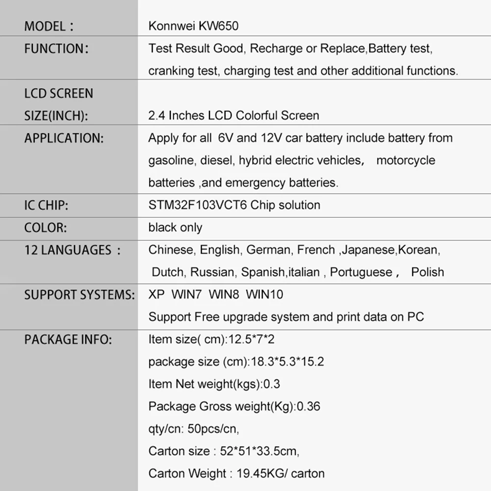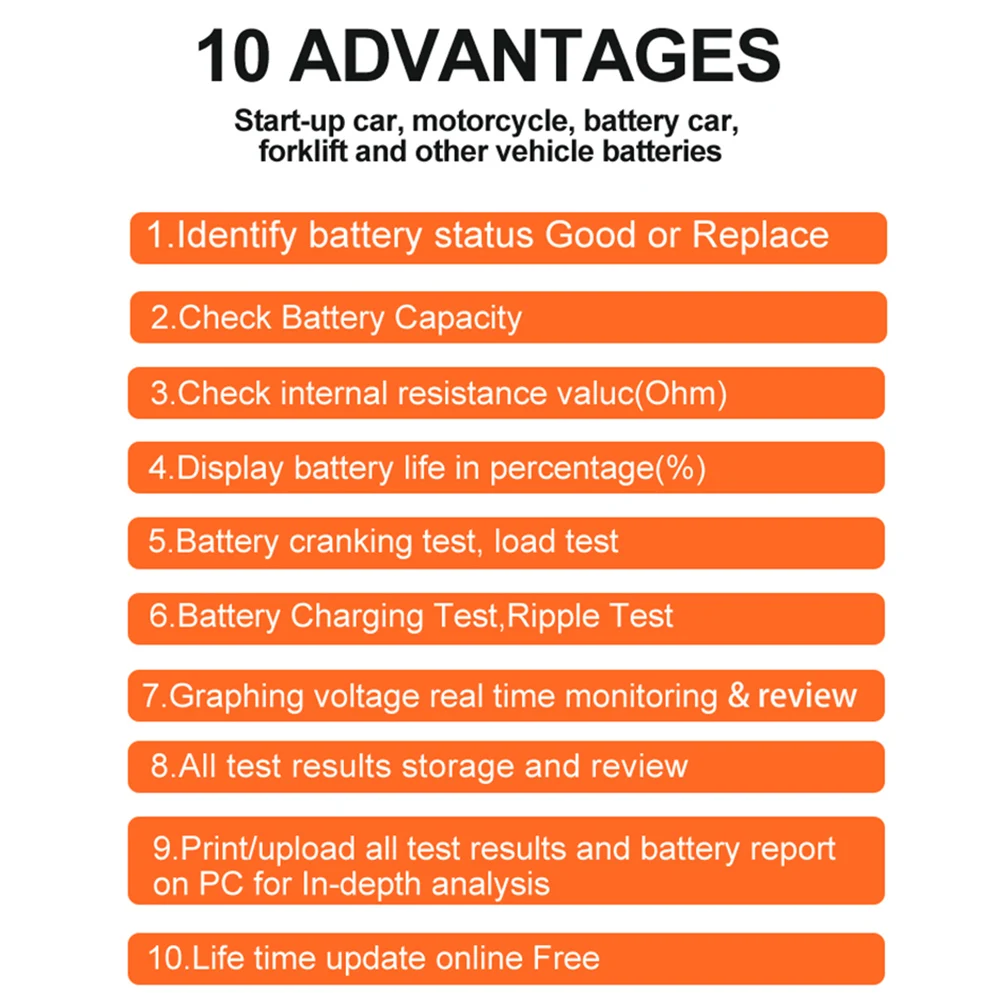 * 8. Поддерживает регулярные Затопленные батареи, AGM плоские пластинчатые батареи, AGM спиральные батареи, гель и EFB батареи в будущем после обновления.