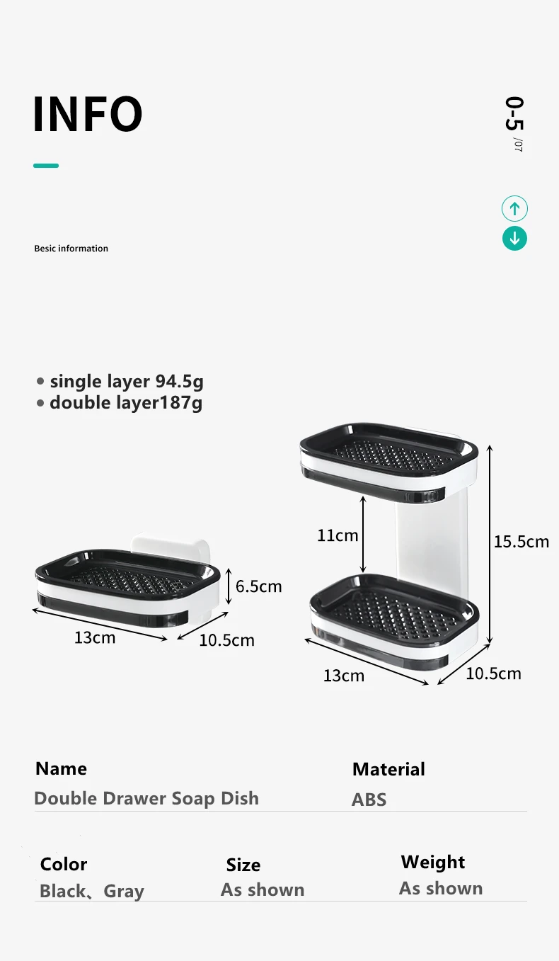 Особенности: 100% новый, высокое качество. 1. Подвесное хранилище, не занимающее пространство раковины, удобно и быстро, легко брать. 2. Большая емкость, подходит для всех видов мыла. 3. Сливное отверстие на дне предназначено для предотвращения замачивания мыла. 4. Изготовлен из АБС-пластика, обладает высокой несущей способностью, прочностью и долговечностью. 5. Простая установка, дизайн без гвоздей, не повреждает стену. Характеристики: Тип: мыльницы Материал: ABS Цвет: черный, серый Размер: как на изображении Вес: однослойный 94,5 г, двойной слой187г Посылка ходит: мыльница-1 шт. Примечания: 1. Цвет изделия может отличаться от изображения из светильник за различий светильник экране. 2. Замеры сделаны вручную, поэтому возможны отклонения на 0,5-2 см.