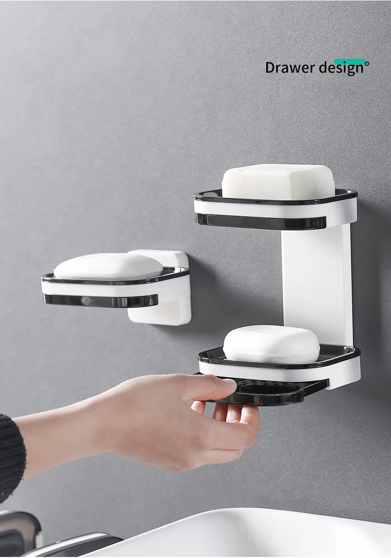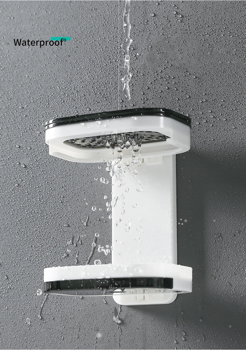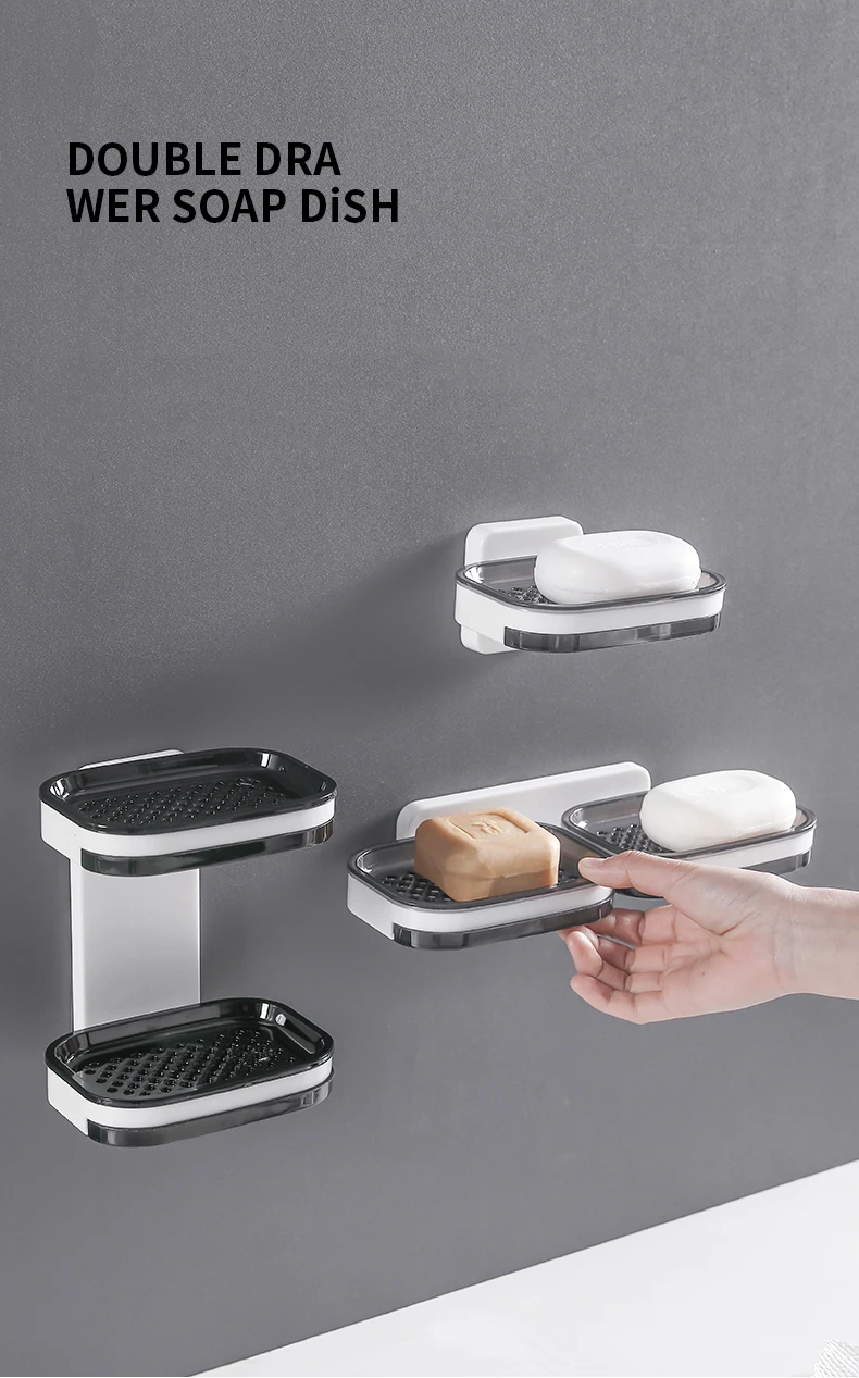 Настенный двухслойный держатель для мыльницы, без отверстий, для сушки губки, органайзер для ванной комнаты, полки