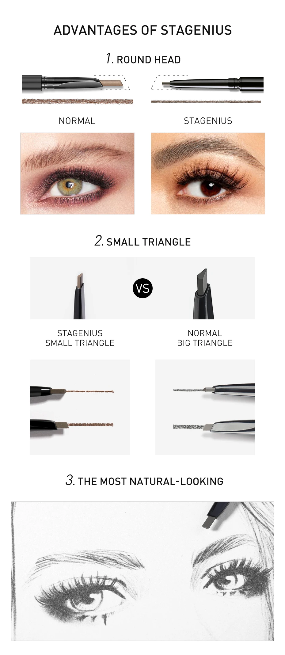 STAGENIUS Сверхтонкий карандаш для бровей водостойкий долговечный треугольный наконечник натуральные коричневые брови красота макияж бровей ручка