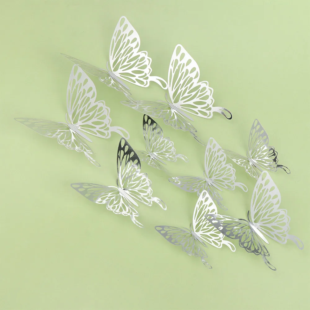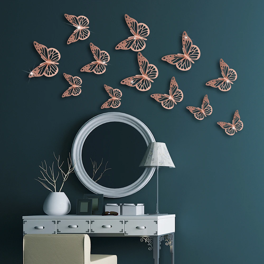 12 шт./упак. 3D полые бабочка наклейки на стену металический текстура, Переводные картинки с бабочками домашний декор DIY ручной работы вечерние свадебные украшения