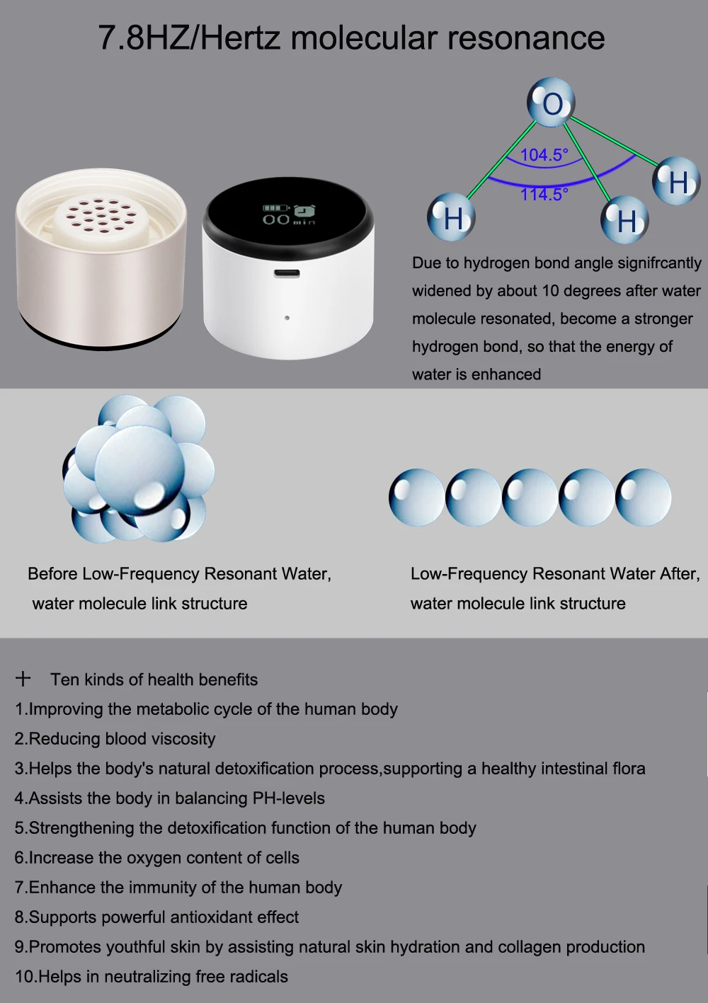 Этот продукт использует принцип спин квантового низкочастотного резонанса, изменяет структуру соединения молекулы воды, изменяет вязкость крови за 20 минут, увеличивает энергию в повседневной питьевой воде, улучшает окружающую среду человеческого тела, клетки могут быть антибактериальными, антивирусными, противогрибковыми, ингибировать мутацию клеток.