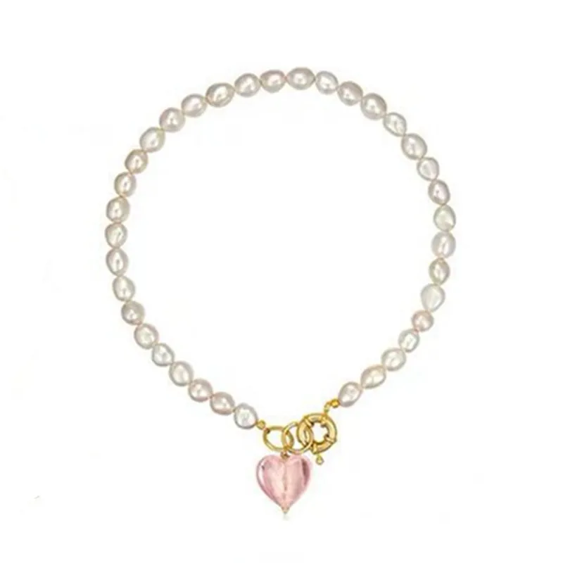 Kshmir 2021 винтажное барочное пресноводное жемчужное розовое/Голубое/подвеска из стекла «сердце» ключицы короткое ожерелье новые ювелирные изделия для девочек в подарок