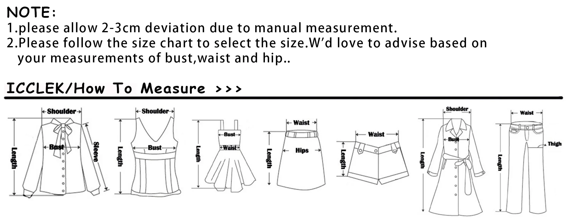 2. Размер может отличаться на 2-3 см из-за ручного измерения. Пожалуйста, обратите внимание при измерении.