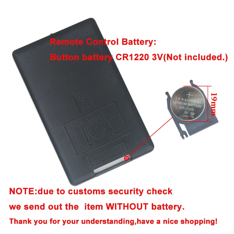 Пульт дистанционного управления Управление Батарея: кнопка Батарея CR1220 3В (Не входит в комплект.)
