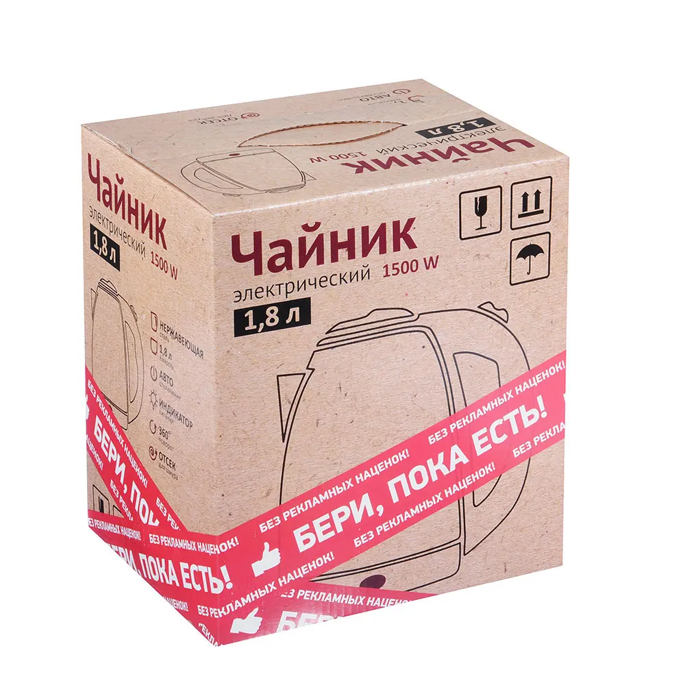 ЧАЙНИК ЭЛЕКТРИЧЕСКИЙ 1,8 Л, 1500 ВТ, НЕРЖАВЕЙКА/ПЛАСТИК
