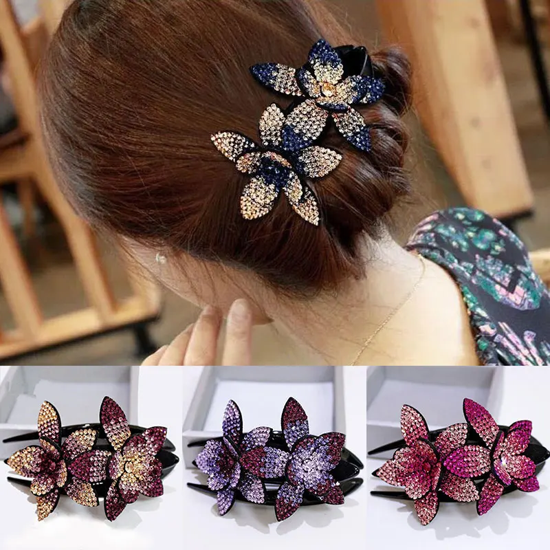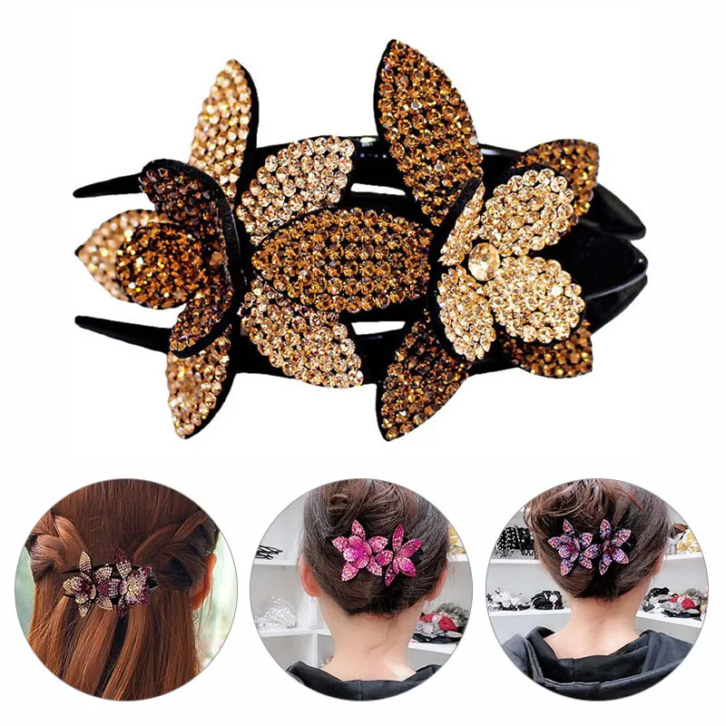 Стразы набор заколок для волос с двойным цветком Женские Элегантные Заколки для волос модные аксессуары для волос