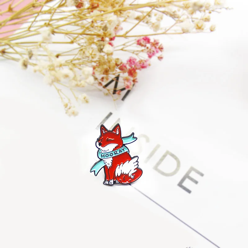 Красная брошь Лисичка с синим шарфом модная брошь хитовое животное брошь Лисичка животное брошь закрытые глаза брошь лисичка