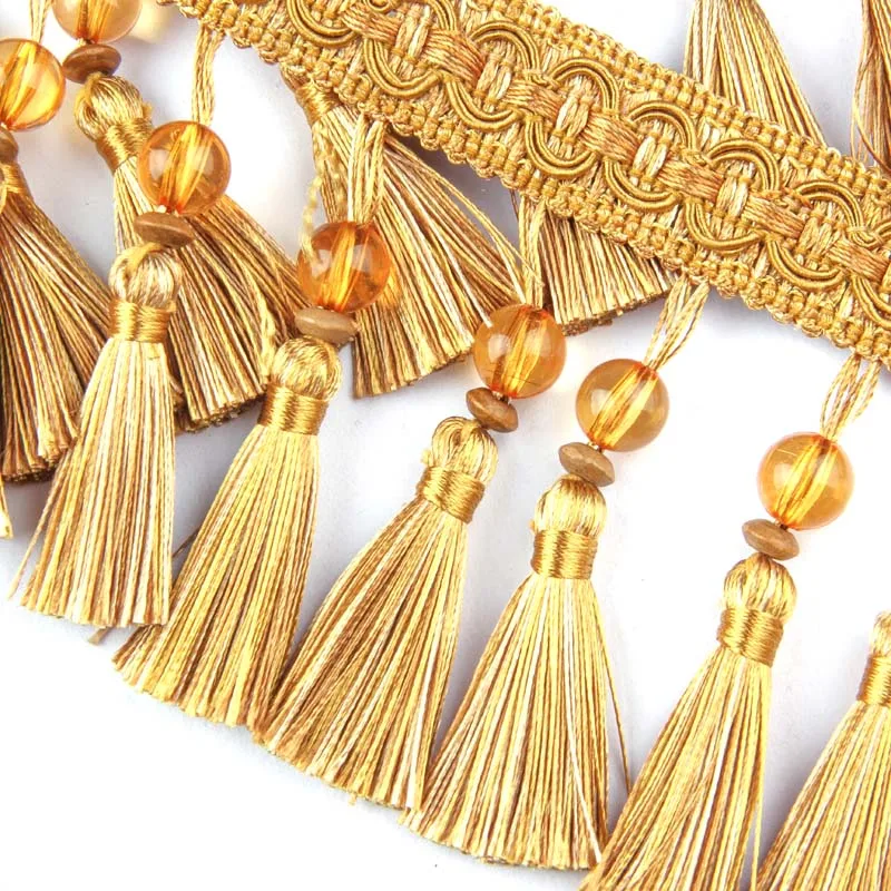 1 м кисточки для штор с бахромой Наименование товара: отделка шторной кружевной бахромой Длина: 1 м Цвет: Золотой/бежевый Использование: шторы, спальня, балкон, украшение для дома, одежда... Совет: из-за различных условий освещения цвет может немного отличаться, некоторые специальные цвета У нас есть собственная фабрика в производстве, добро пожаловать на заказ! Мы готовы установить долгосрочные отношения с клиентами, сотрудничество и общее развитие!