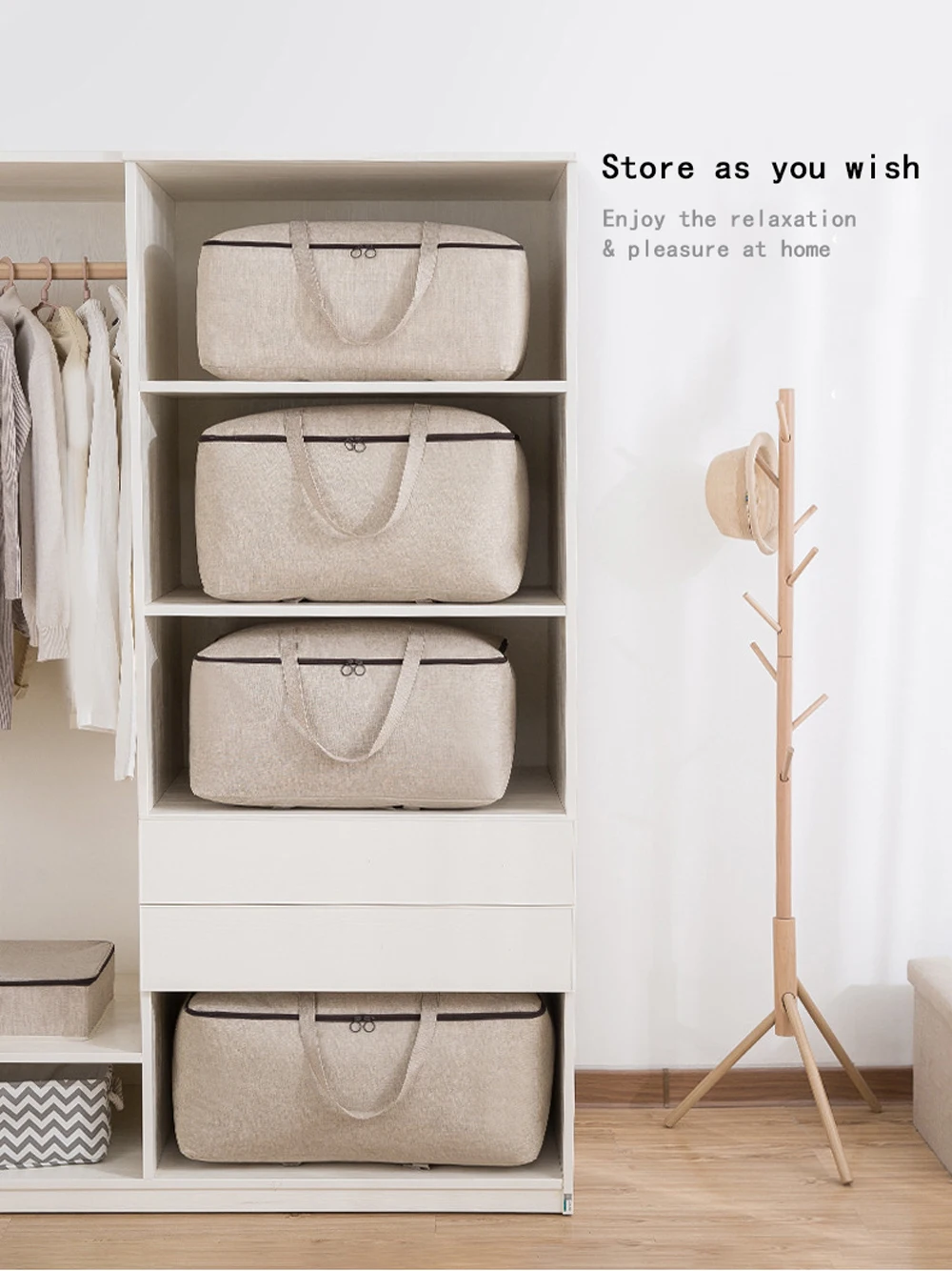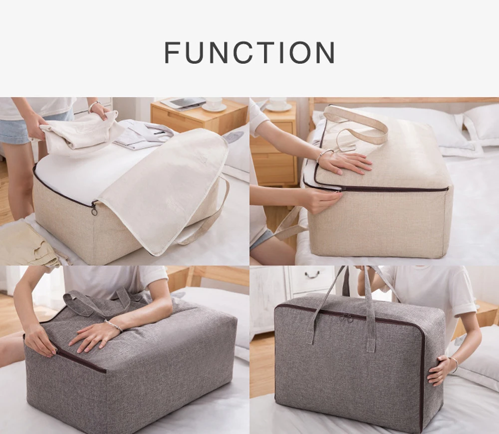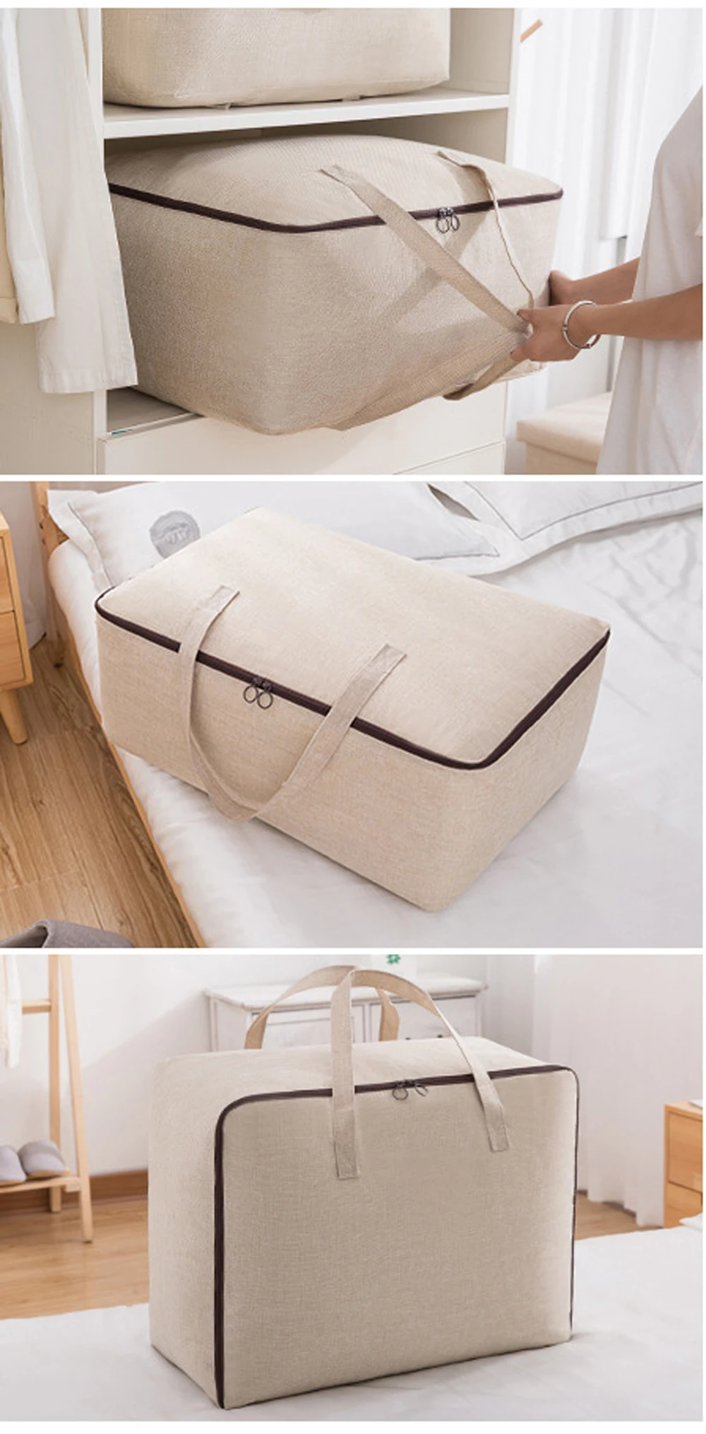 ① Большая сумка для хранения сделана из хлопчатобумажной ткани, которая не имеет запаха, больше подходит для хранения ваших постельных принадлежностей и одежды и т. д. приносит вам более здоровую и экологичную жизнь.