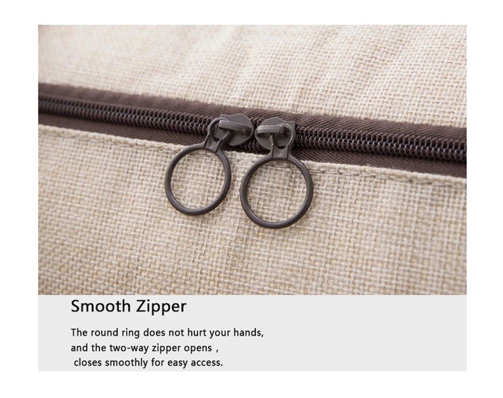 Специальная конструкция молний приносит больше удобства, когда кладете/вынимаете большие предметы, такие как одеяло (размер L/XL), одеяло и т. д.