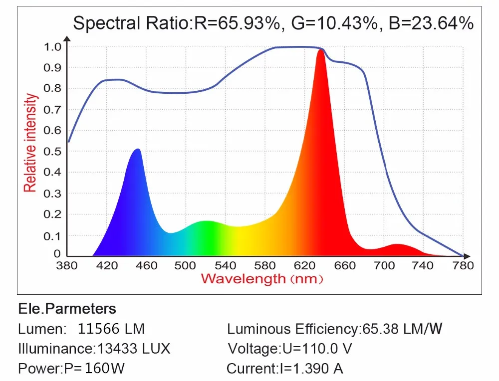 Полный спектр для вегетативной и цветущей стадии: 430 ~ 440nm, 450 ~ 475nm, 620 ~ 630nm, 650 ~ 670nm, белый, IR(730nm)