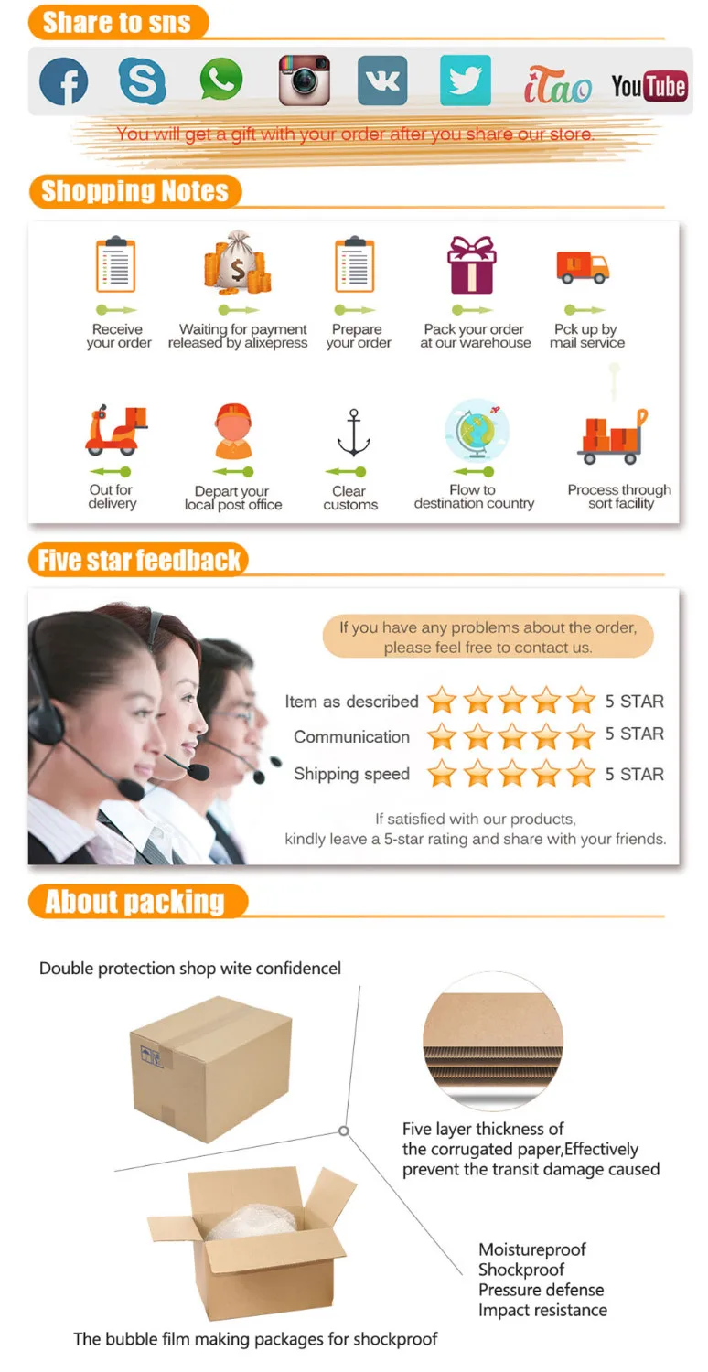 3. Перед покупкой внимательно прочитайте посылка и выберите посылка d. В случае, если у вас есть какие-либо проблемы с задержками доставки или дефектными продуктами, пожалуйста, свяжитесь с нами, ваше понимание будет высоко оценено! Lightpake всегда придерживается принципа, что клиент-Бог, И мы искренне предоставим вам лучший сервис. Спасибо за поддержку нашего магазина. Большое спасибо! Желаю вам счастливой жизни!