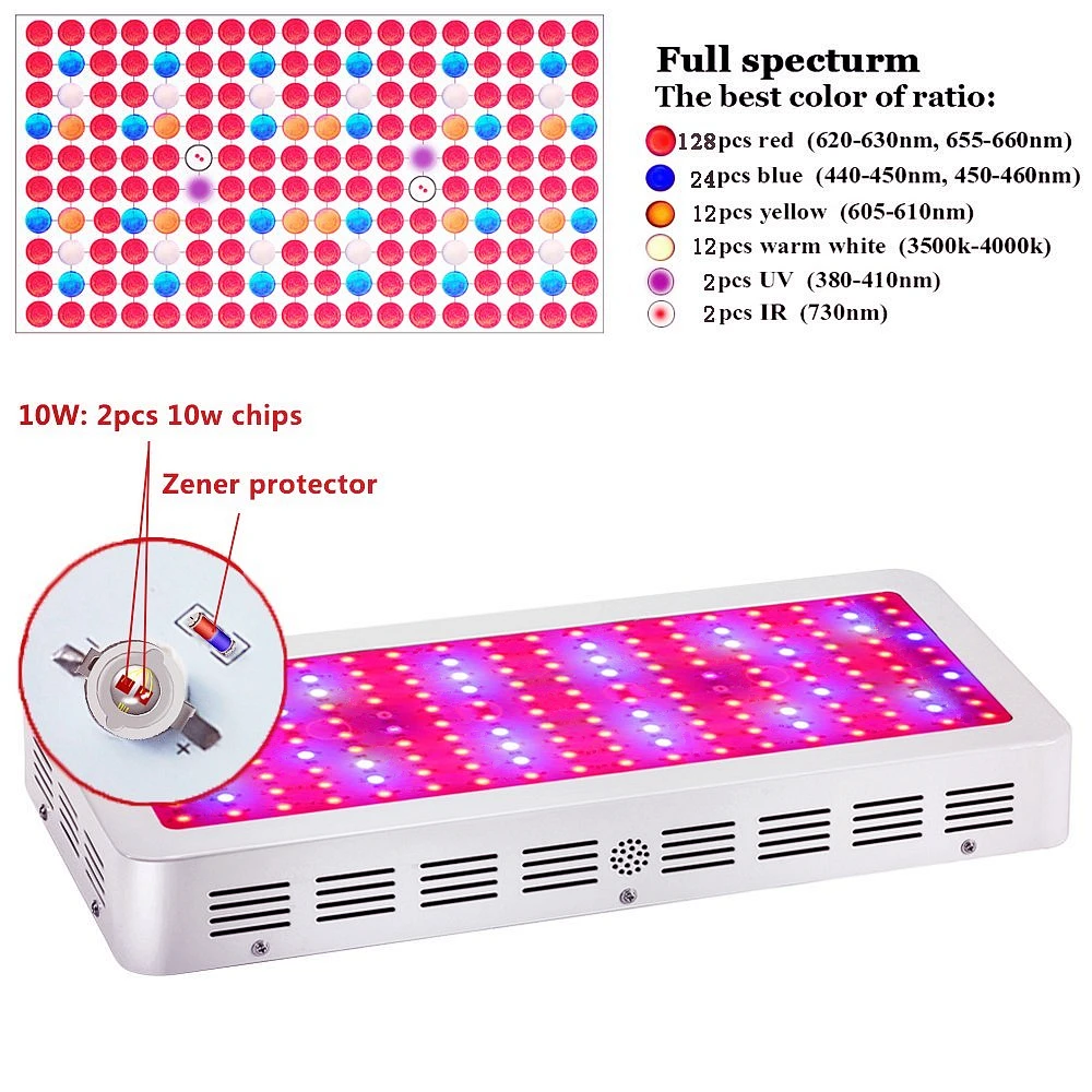 Мы используем лучший светодиодный индикатор, который позволяет нам иметь хорошее качество светодиодный светильник. Производитель, который производит достаточно различных нанометров (нм) светодиодный s во всех длинах волн, необходимых для обеспечения полного спектра Epistar и Optotech. Много исследований свидетельствует о том, что Epistar и Optotech чипсет хороши для Светодиодный grow lights. Правильный выбор, если вы решите купить наши огни