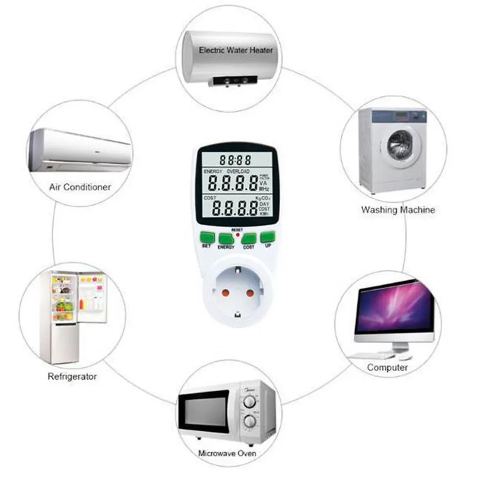 Особенности: 1. Практичность: Этот измеритель мощности может измерять потребление энергии, напряжение, ток и время работы электрических приборов, используемых одновременно. 2. Цифровой дисплей: Этот измеритель мощности принимает цифровой дисплей, экран большой, и цифровой дисплей очень четкий. 3. Хорошее качество: Этот измеритель мощности изготовлен из прочных материалов, с очень хорошим качеством и долгим сроком службы. Описание: Этот измеритель мощности может одновременно измерять потребляемую мощность, напряжение, ток и время использования электрических приборов. Характеристики: Мощность потребление Мощность метр Монитор: 0,5 W Рабочее напряжение: 230 В переменного тока Частотный дисплей: 50 Гц Рабочий ток: макс. 16А Широкий диапазон напряжения: 230-250 В Дисплей с установленной мощностью (Вт)-0 Вт ~ 9999 Вт; Но реальный дисплей с мощностью (Вт)-0 ~ 3680 Вт Отображение времени: 0 секунд ~ 9999 дней Диапазон отображения напряжения: 0V ~ 9999V Отображение тока (Ампер): 0.000A ~ 16.000A Частотный дисплей: 0 Гц ~ 9999 Гц Цена Диапазон отображения: 0,00 стоимость/кВтч метр ¡«99,99 стоимость/кВтч метр Общее количество кВт/ч и отображение затрат: 0,000квт/ч-9999квт/ч, 0,00 COST----9999COST Посылка включает в себя: 1 * измеритель мощности (без аккумулятора)
