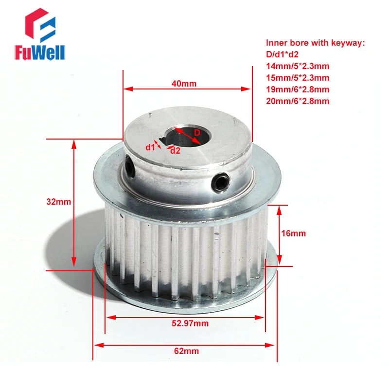Отверстие 19 мм, шпоночный шпон 6*2,8 мм;