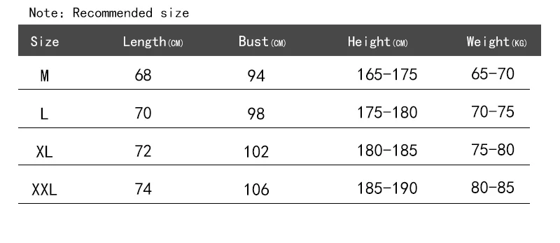 1. Поскольку форма тела каждого человека отличается, рекомендуемый рост и вес могут использоваться только в качестве справочной информации. 2. Если ваш рост и вес между 2 размерами, пожалуйста, выберите больший размер. 3. Если вы не уверены, какой размер выбрать, пожалуйста, свяжитесь с нами. 4. Информация о размере измеряется вручную, и возможна погрешность в 1-2 см. 5. Из-за световых эффектов, настроек яркости/контрастности монитора и т. д. могут быть некоторые незначительные различия в цветовом тоне фотографий и фактического товара! 6. Дорогой друг, спасибо за покупку подарков в нашем магазине. Пожалуйста, не забудьте указать свое полное имя, подробный адрес, почтовый индекс, номер телефона. Чтобы вы могли успешно получить свою посылку. 7. Дорогой друг, мы используем Азиатские размеры, вы не уверены в размере, пожалуйста, дайте мне информацию о вашем весе и росте, я могу дать вам совет