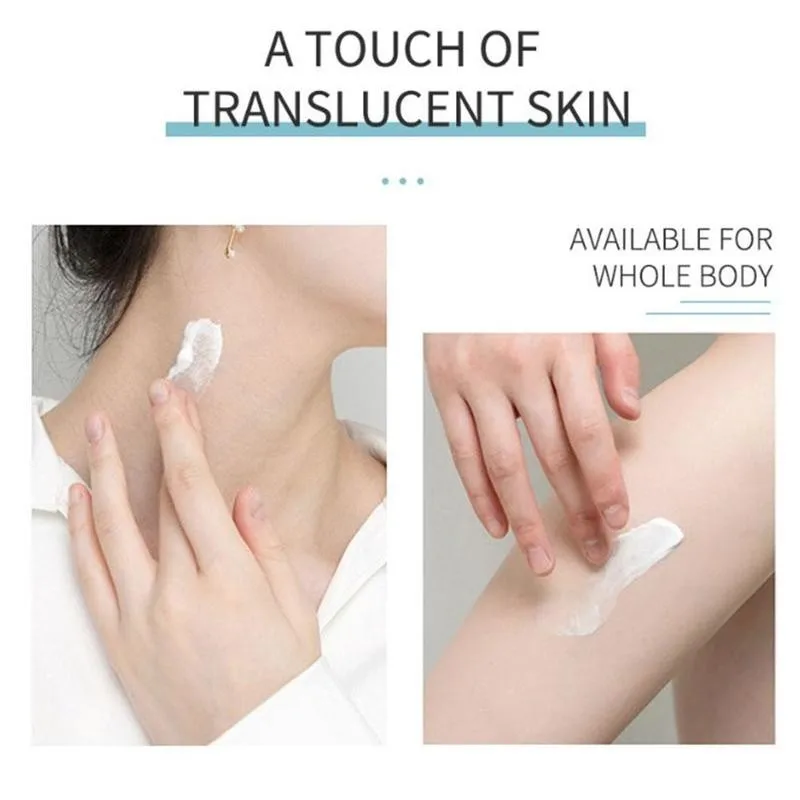 Отбеливает и сразу осветляет лицо и тело, можно использовать отдельно или смешивать с тональным кремом, имеет нежирную текстуру, не только отбеливает и осветляет вашу кожу, но и придает коже ровный тон. Более того, он увлажняет вашу кожу, делая вашу кожу мягкой и шелковистой.